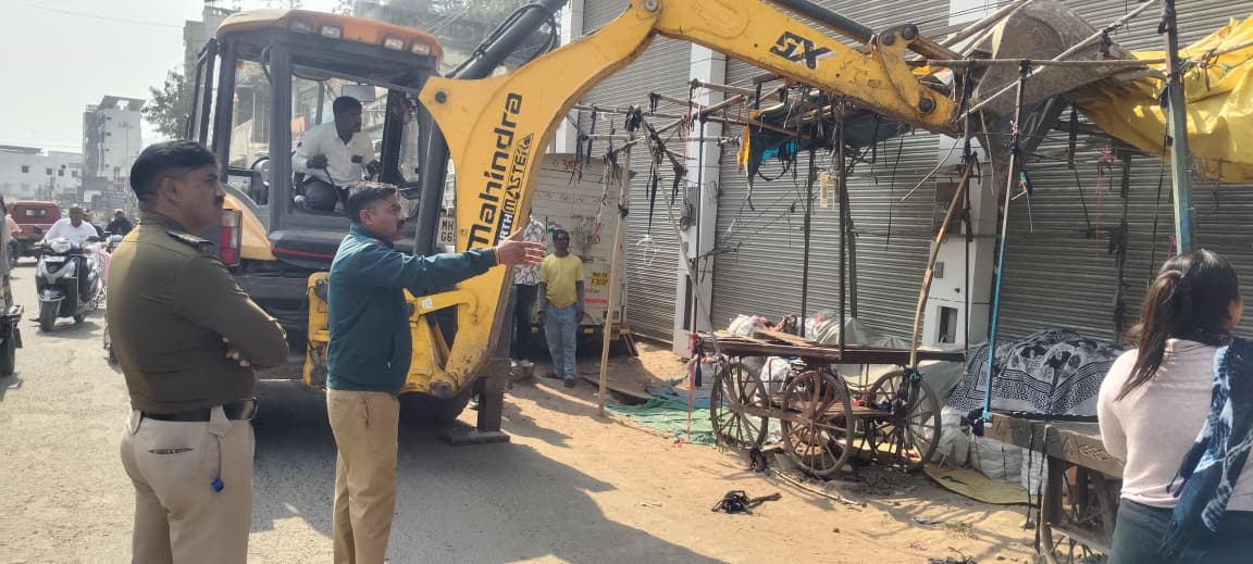 भंडारा:- नगर परिषद मार्फत १०० दिवसांच्या विशेष कृती आराखडाची अंमलबजावणी सुरू असून त्यामध्ये प्राथमिकता शहरातील असलेल्या अतिक्रमण मुक्त करण्यासाठी कार्यवाही नगर परिषद मार्फत सुरू आहे. या अगोदर खात रोडवरील अतिक्रमण काढण्यात आले.