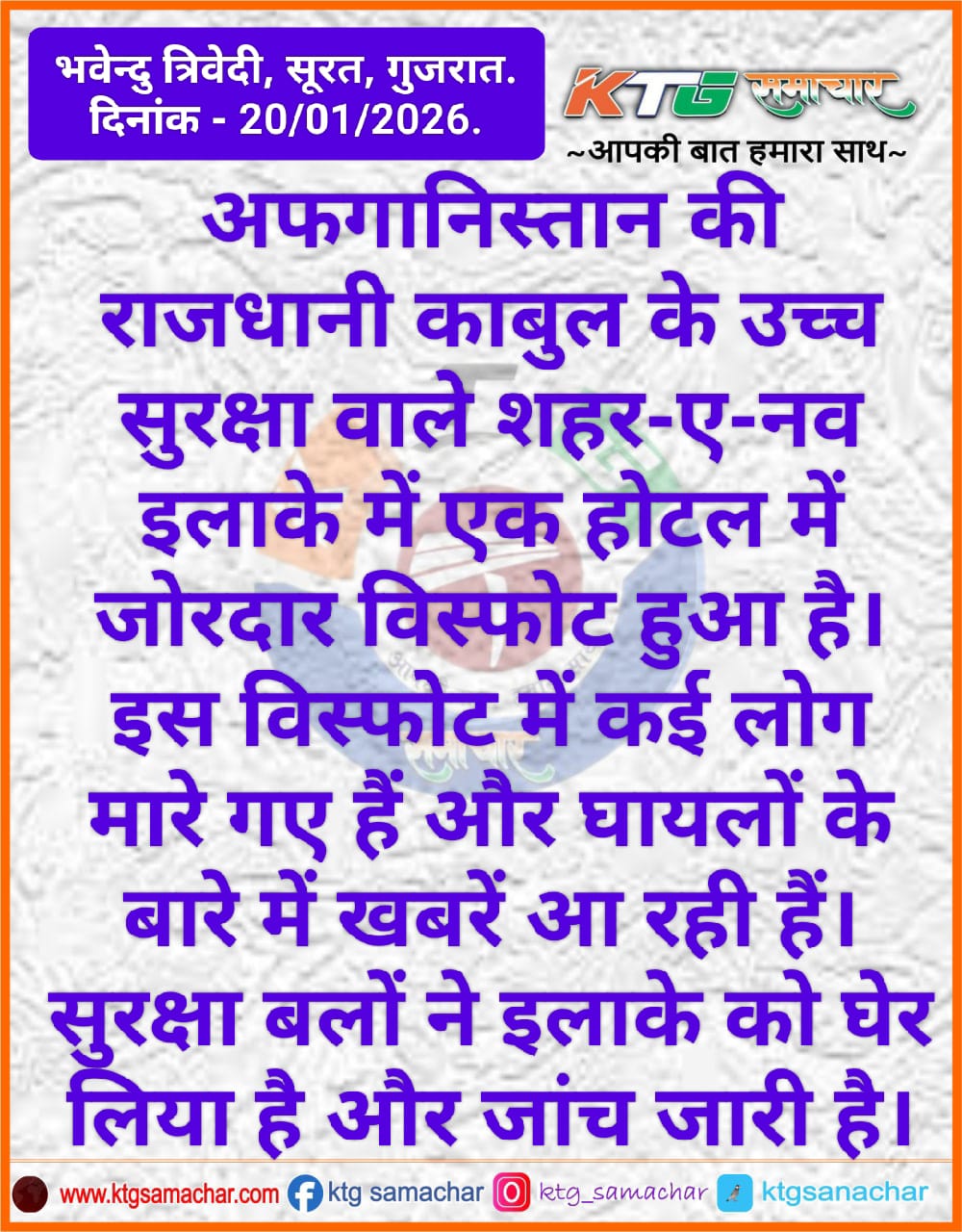 अफगानिस्तान की राजधानी काबुल के उच्च सुरक्षा वाले इलाके में एक होटल में जोरदार विस्फोट हुआ है।