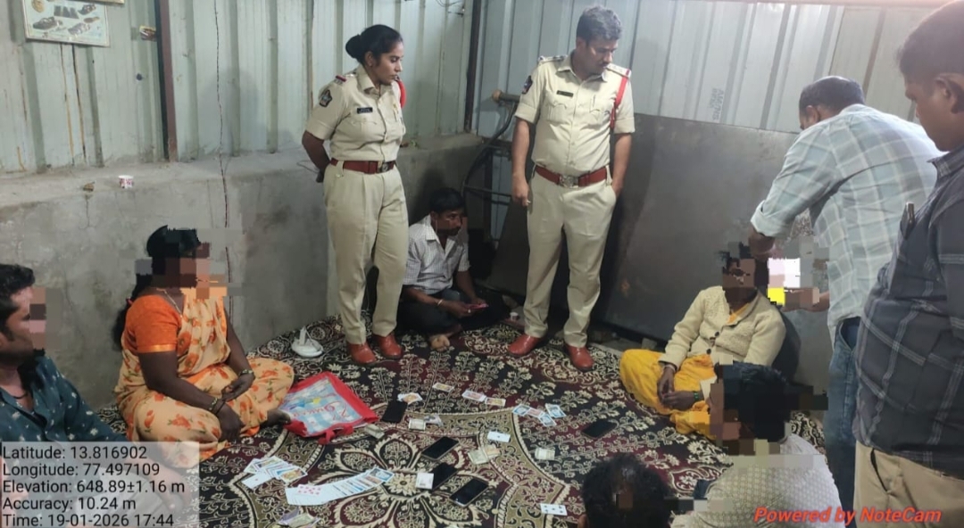 హిందూపురం పట్టణంలోని రహమత్పురంలో పేకాట ఆడుతున్నారన్న రాబడిన సమాచారం మేరకు హిందూపురం టూ టౌన్ సిఐ కరీం, ఎస్సై తమ సిబ్బందితో పేకాట స్థావరంపై దాడులు నిర్వహించి 8 మంది పేకాటరాయలను అరెస్టు చేయడంతో పాటు రూ ,17,840 నగదును , 8 సెల్ ఫోన్లు స్వాధీనం చేసుకొని కేసు నమోదు చేసినట్లు సిఐ కరీం తెలిపారు.