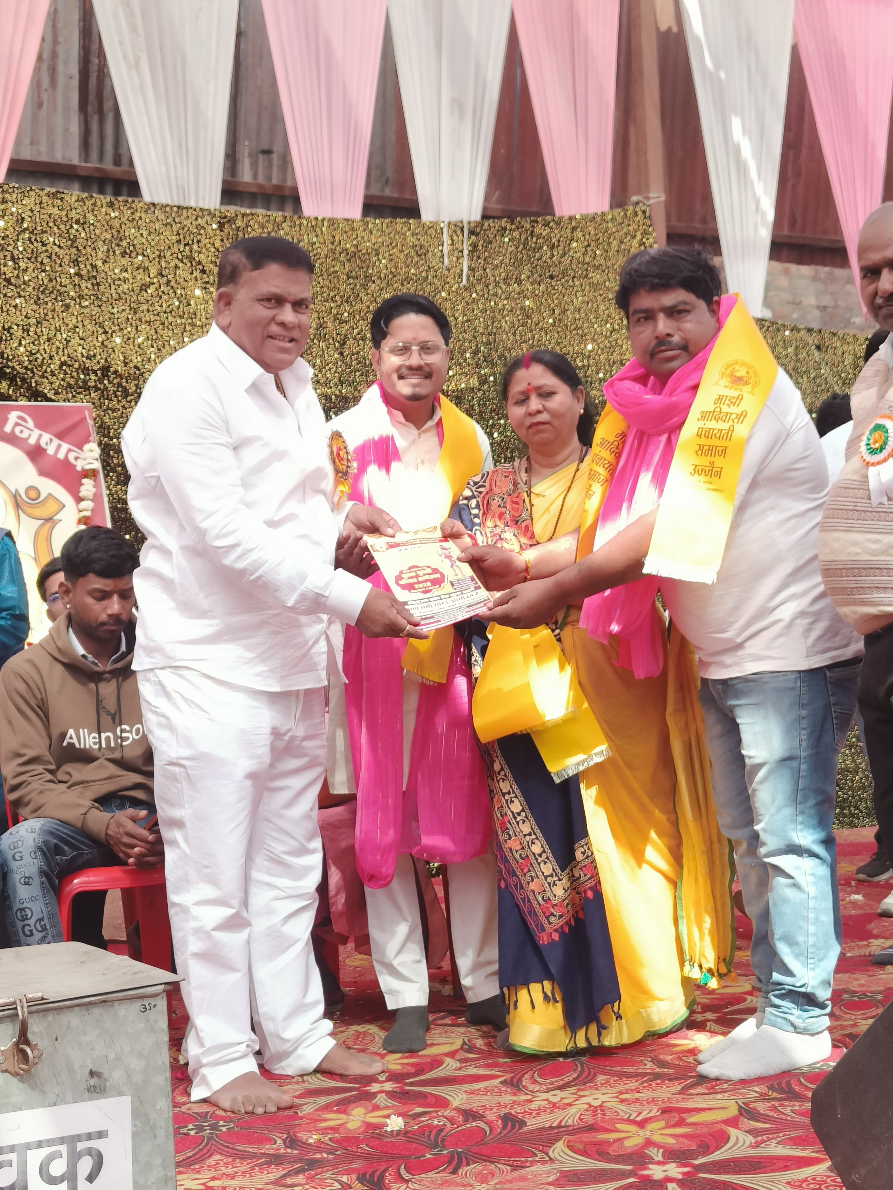 उज्जैन की पवन धारा बाबा महाकाल की नगरी में माझी आदिवासी पंचायती समाज के तत्वाधान में 36 वा युवक युवती परिचय सम्मेलन का आयोजन 18 जनवरी को संपन्न हुआ जिसमें 250 से अधिक युवक युवती ने अपने परिचय दिए साथी समाज के प्रतिभावान बच्चों को निषाद राज अवार्ड से भी सम्मानित किया गया एवं इसी के साथ प्रदेश अध्यक्ष माजी पंचायती समाज उज्जैन राकेश वर्मा पहलवान द्वारा समाज के समाजसेवी को समाजसेवी अवार्ड से भी सम्मानित किया गया एवं समाज की मुख्य समस्याओं माझी आरक्षण के लिए भी प्रदेश भर से आए सामाजिक लोगों ने चिंतन मंथन भी किया साथ ही रीवा से आए हुए से मन्दिर के बाबामनसुख लाल जी के एवं उनकी टीम द्वारा फलों से तौल कर तुला दान भी किया गया राकेश वर्मा पहलवान का इंदौर उज्जैन भोपाल से जिसमे प्रमुख रूप से अंश बाथम मनोज बाथम ममता बाथम डी पी रायकवार विदिशा रायसेन एवं मध्य प्रदेश के समस्त जिलों से लगभग 5000 से 7000 सामाजिक बंधु एकत्र हुए