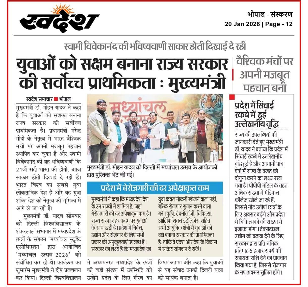 मध्यप्रदेश में निवेश, उद्योग और रोजगार के लिए सभी प्रकार की अनुकूलताएं हैं उपलब्ध : मुख्यमंत्री डॉ. मोहन यादव