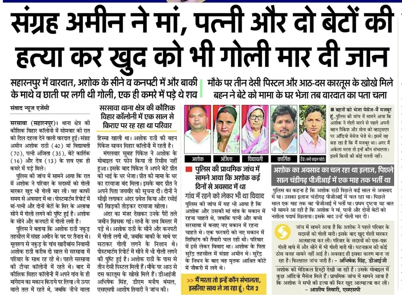 सरसावा की कौशिक विहार कॉलोनी का दिल दहला देने वाला मामला ।