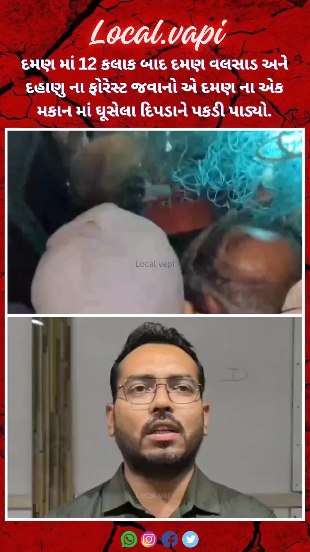 દમણ માં 12 કલાક બાદ દમણ વલસાડ અને દહાણુ ના ફોરેસ્ટ જવાનો એ દમણ ના એક મકાન માં ઘૂસેલા દિપડાને પકડી પાડ્યો.