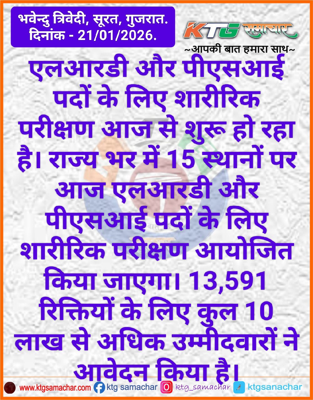 एलआरडी और PSI पदों के लिए शारीरिक परीक्षण आज से शुरू हो रहा है।