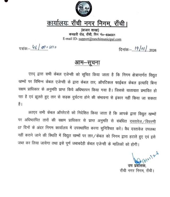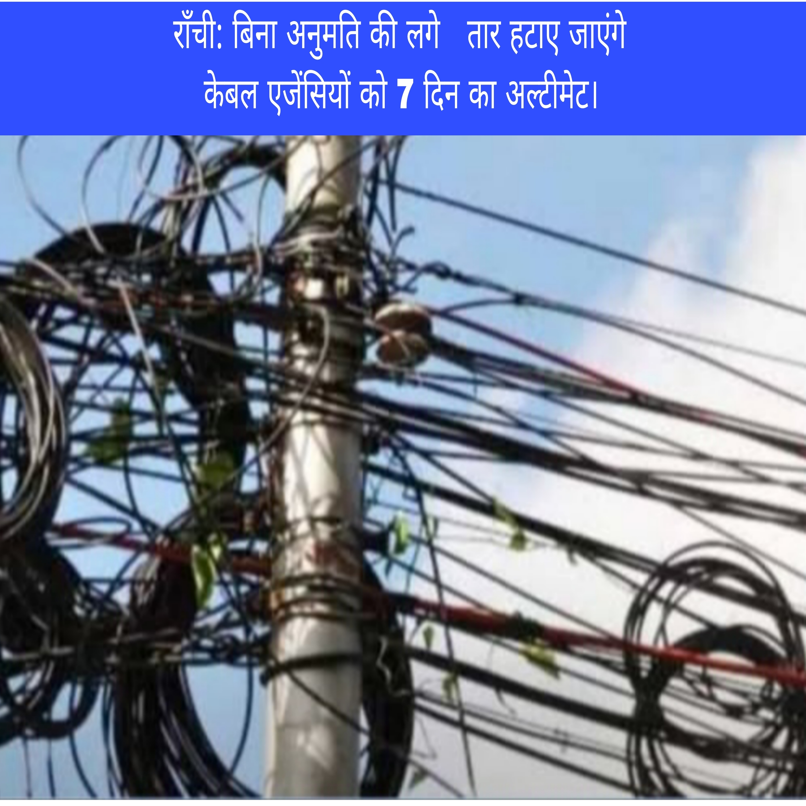 राँची: बिना अनुमति के लगे तार हटाए जाएंगे केबल एजेंसियां को 7 दिन का अल्टीमेट।