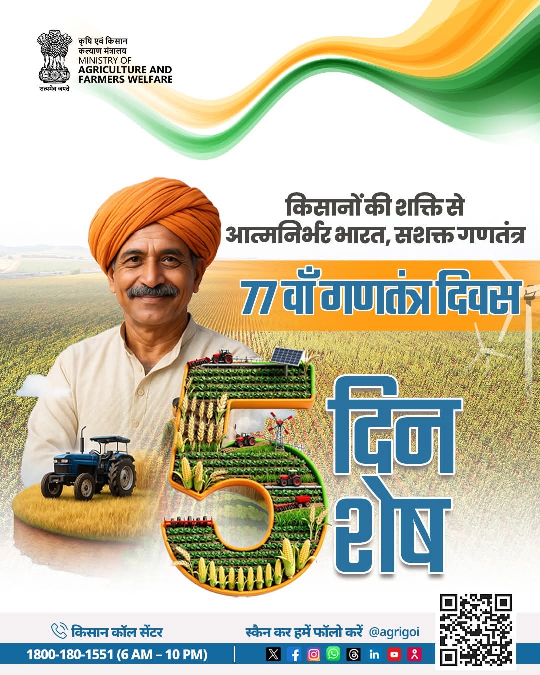इस गौरवपूर्ण अवसर पर देश के अन्नदाता हमारे विशिष्ट अतिथि के रूप में शामिल होंगे। उनकी मेहनत, संघर्ष और समर्पण ही भारत की असली ताकत है। आइए, हम सब मिलकर उन अन्नदाताओं को नमन करें, जिनकी मेहनत से देश निरंतर आगे बढ़ रहा है।