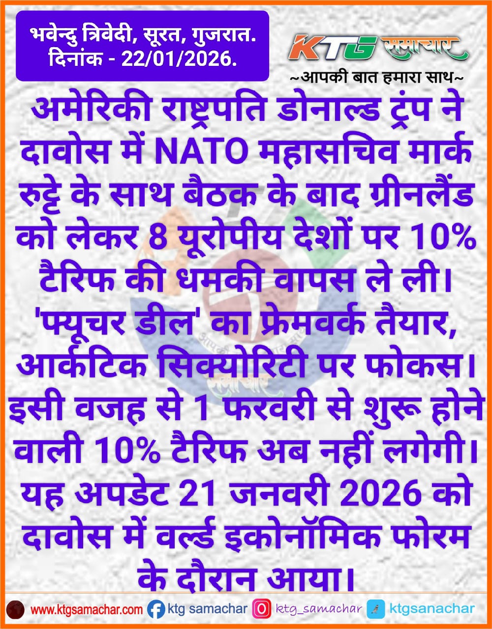 ट्रंप ने ग्रीनलैंड पर टैरिफ धमकी वापस ली।