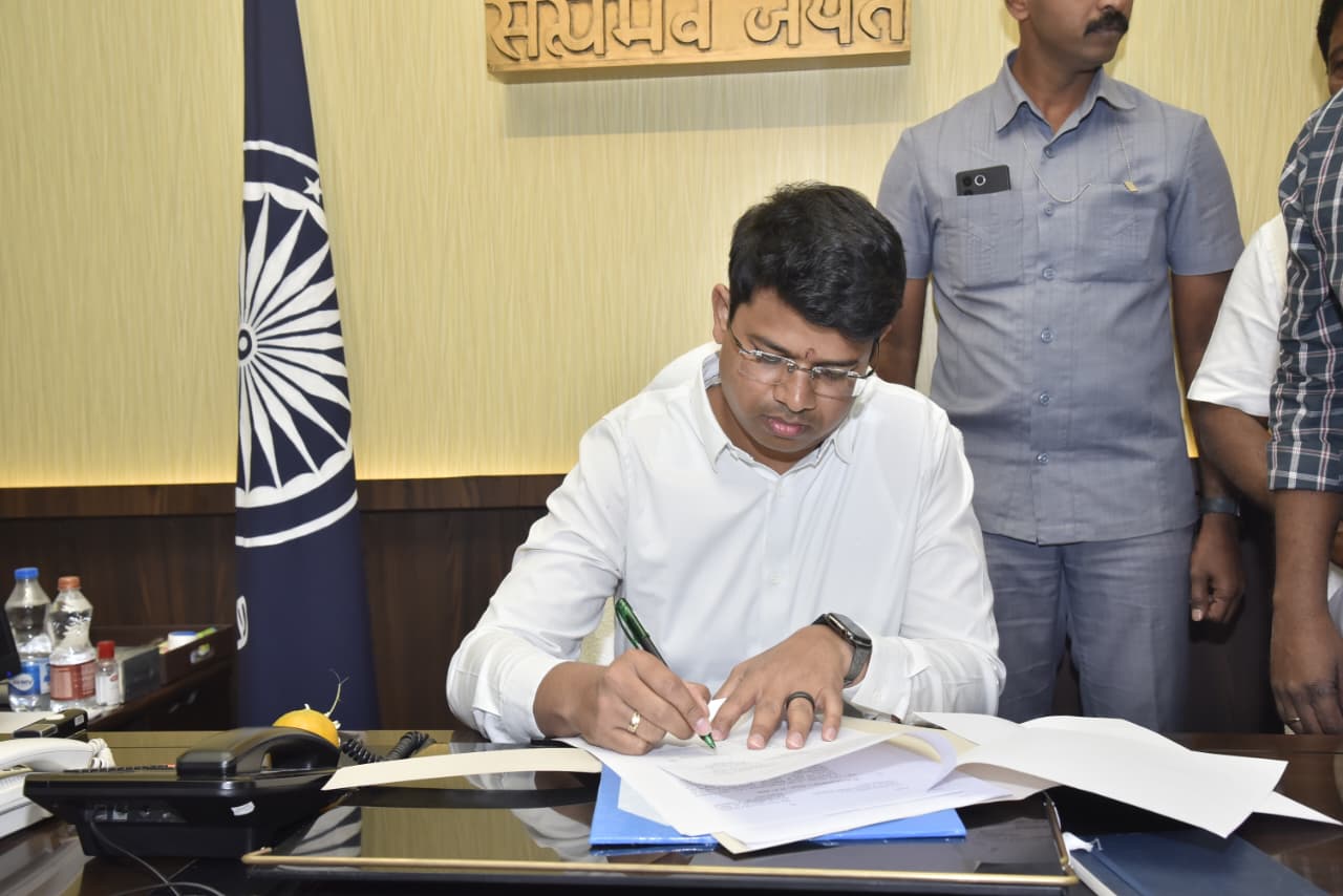 కలెక్టరేట్ లో అనంతపురం జిల్లా నూతన సంయుక్త కలెక్టర్ గా బాధ్యతలు చేపట్టిన అనంతరం ఇంచార్జి జిల్లా కలెక్టర్ గా బాధ్యతలు స్వీకరించిన సి.విష్ణు చరణ్.