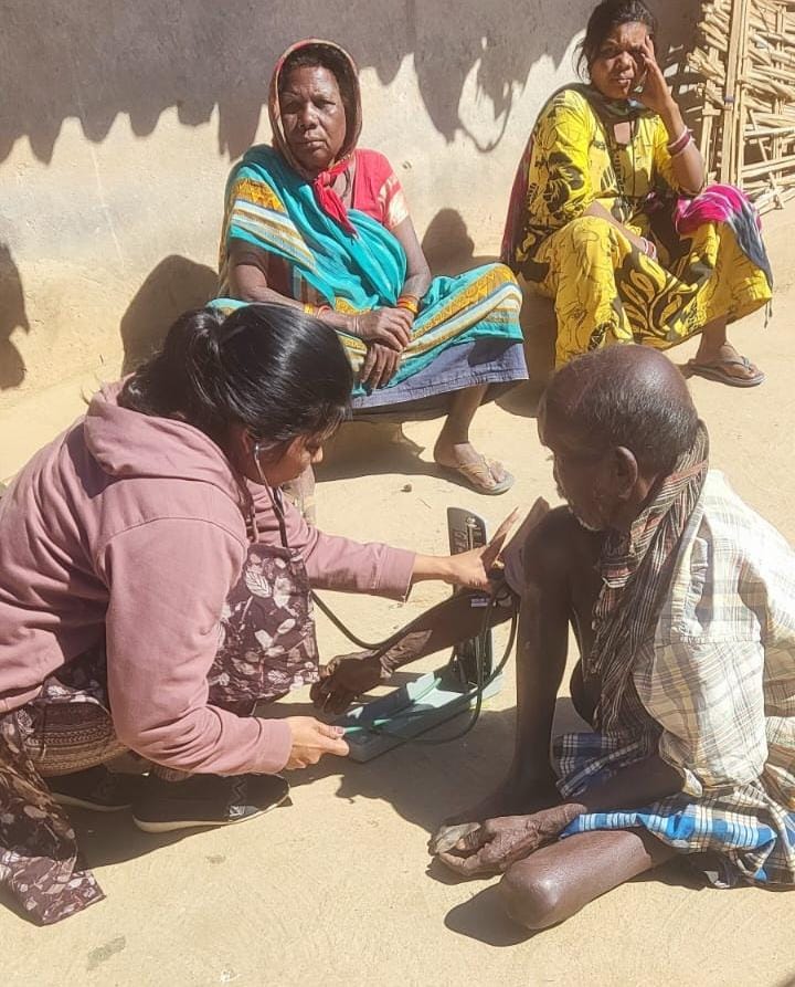 कोरिया 22 जनवरी 2026/* ग्राम पोंडी के पंडोपारा निवासी 80 वर्षीय सोमार साय, पिता कतलू राम एवं उनकी पत्नी मानकुंवर के घर स्वास्थ्य विभाग का चिकित्सा दल पहुँचा, जहाँ दोनों का मौके पर स्वास्थ्य परीक्षण किया गया।