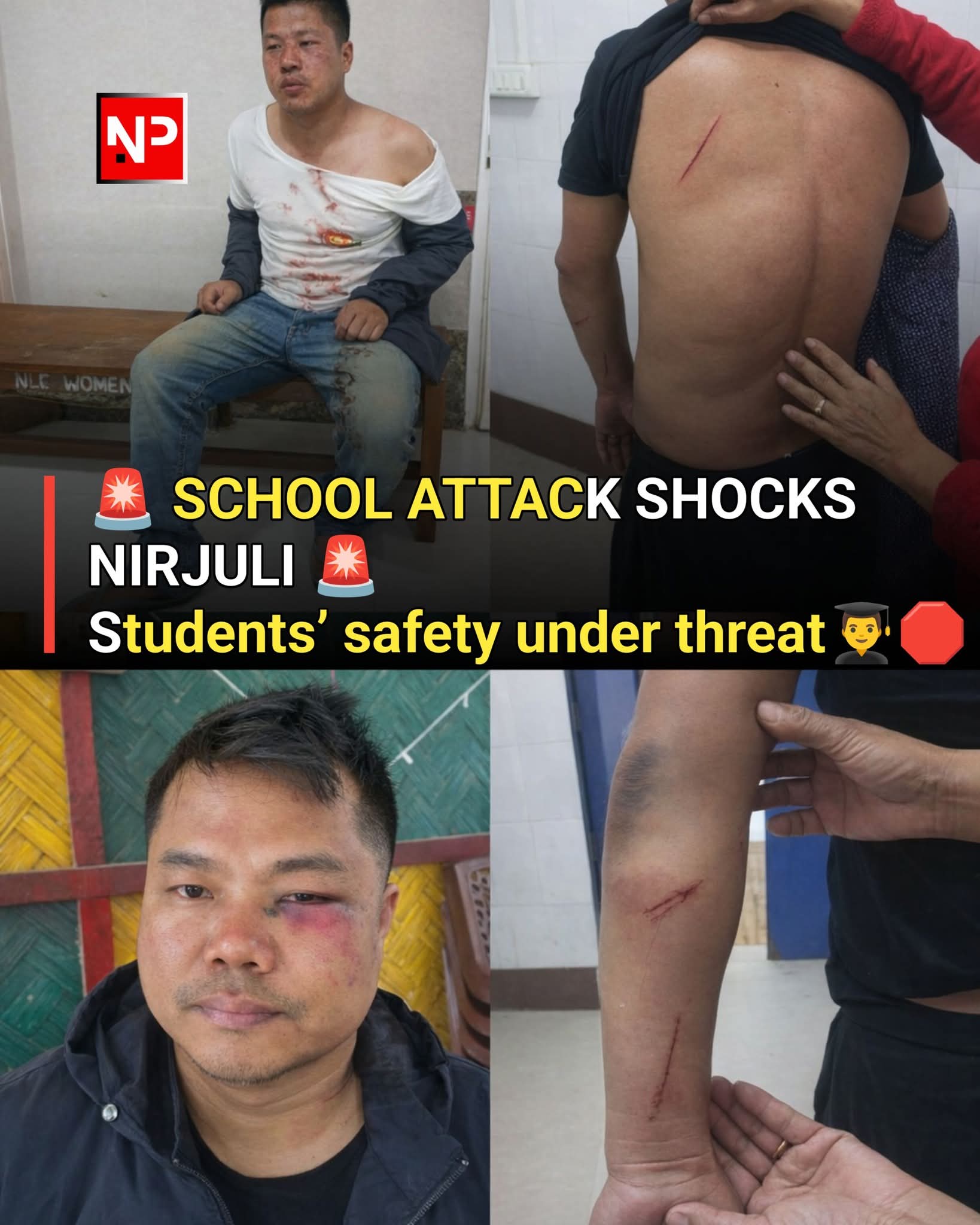 A grave and disturbing incident has been reported at Children Training School, Nirjuli, where Shri Teli Bani and two others allegedly forcibly trespassed into the school premises, assaulted staff members, and kidnapped the Director-cum-Principal of the institution.