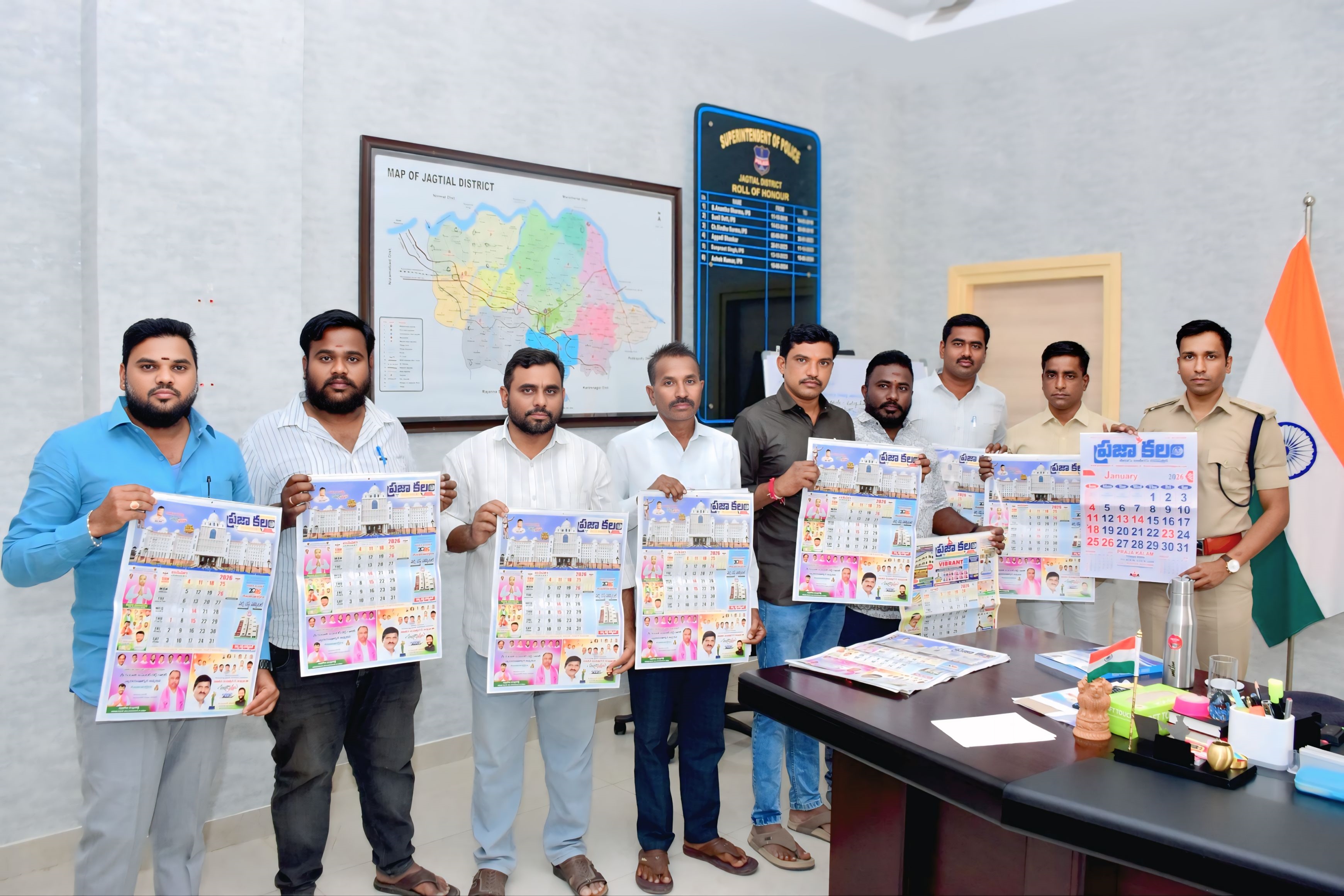 జగిత్యాల్ ప్రతినిధి (తరి రాజశేఖర్) జనవరి 22 : ప్రజలకు, ప్రభుత్వానికి, అధికారులకు దోహదపడే వార్తలను ప్రచురించడంలో ప్రజా కలం దినపత్రిక అగ్రభాగాన నిలుస్తుందని జగిత్యాల జిల్లా ఎస్పీ అశోక్ కుమార్ అన్నారు. గురువారం జిల్లా కేంద్రంలోని ఎస్పీ కార్యాలయంలో ప్రజా కలం దినపత్రిక ఉమ్మడి కరీంనగర్ జిల్లా ఇంచార్జ్ మహమ్మద్ అజీమ్ ఆధ్వర్యంలో ప్రజా కలం దిన పత్రిక నూతన సంవత్సర క్యాలెండర్ ను ఎస్పీ అశోక్ కుమార్ ఆవిష్కరించారు. ఈ సందర్భంగా ఆయన మాట్లాడుతూ. ప్రజా సమస్యలను వెలికితీస్తూ వాటి పరిష్కారంలో ప్రజా కలం ముందుంటుందని. ప్రజలను చైతన్యవంతులను చేసే విధంగా ప్రజా కలం విలేకరులు కథనాలు ప్రచురించాలని సూచించారు. ఈ కార్యక్రమంలో ప్రజా కలం గొల్లపల్లి రిపోర్టర్ స్వామి గౌడ్, ఎండపల్లి రిపోర్టర్ గుండ గంగయ్య, మెట్‌పల్లి రూరల్ రిపోర్టర్ కుర్ర రాజేందర్, టీయూడబ్ల్యూజే ఐజేయు. జగిత్యాల జిల్లా ఈసీ మెంబర్ షేక్ సాజిత్, మెట్‌పల్లి ప్రెస్ క్లబ్ ప్రింట్ మీడియా జాయింట్ సెక్రటరీ పింజారి శివ కుమార్, మెట్‌పల్లి ప్రెస్ క్లబ్ ప్రింట్ మీడియా మాజీ అధ్యక్షుడు ఆగ సురేష్ తదితరులు పాల్గొన్నారు.