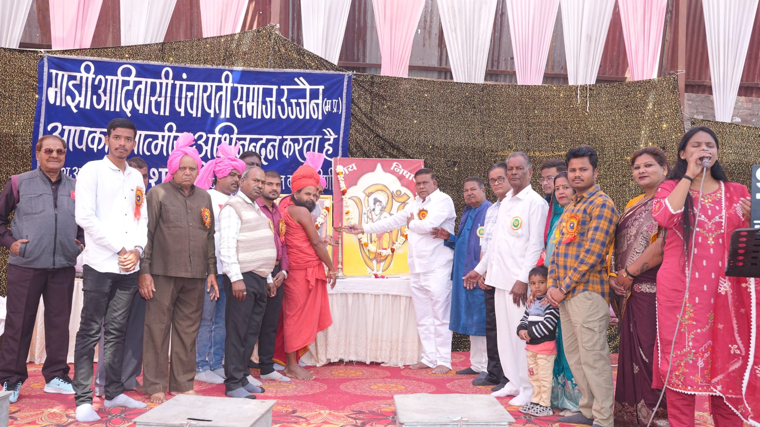 उज्जैन। माझी आदिवासी पंचायती समाज के तत्वाधान में रविवार को अखिल भारतीय परिचय सम्मेलन व माझी महाकुंभ का प्रेम छाया परिसर में आयोजित किया इस कार्यक्रम में प्रदेश भर से समाज जनो ने शामिल होकर कार्यक्रम को सफल बनाया । समाज के प्रदेश अध्यक्ष राकेश वर्मा ने बताया कि मुख्य अतिथि रीवा के महंत श्री मनसुख लाल जी बाबा एव उदासी अखाड़े के महंत त्यागी हरिशरण दास महाराज उपस्थित थे। महंत श्री मनसुख लाल जी बाबा को तलवार देकर सम्मानित किया गया। उन्होंने अपने भाषण में यह कहा है कि मैं माझी समाज के लिए हमेशा हमेशा तत्पर रहूंगा प्रदेश अध्यक्ष राकेश वर्मा के द्वारा अभिनंदन कर धन्यवाद दिया। कार्यक्रम मे 150 जोड़े बने। साथ ही 300 युवक युवतियों की प्रविष्टियां प्राप्त हुई । साथ ही समाज के प्रतिभावान विद्यार्थी वरिष्ठ समाजसेवी एवं दानदाताओं का निषाद अवार्ड तथा युवा युवतियों को ड्रॉ निकालकर सम्मानित किया गया । कार्यक्रम का संचालन खेमचंद रायकवार ने किया। आभार रामचरण रायकवार ने माना।इस अवसर पर , सोमेश रायकवार, गोपाल रायकवार, संजय रायकवार चिंतामणि रायकवार ,विजय रायकवार,राजू रायकवार, मयंक माझी,श्रीमति मीना रायकवार, आरती पारीया, श्रीमति देवमणि, जितेंद्र माझी , राहुल बाथम आदि समाजजन मौजूद थे।