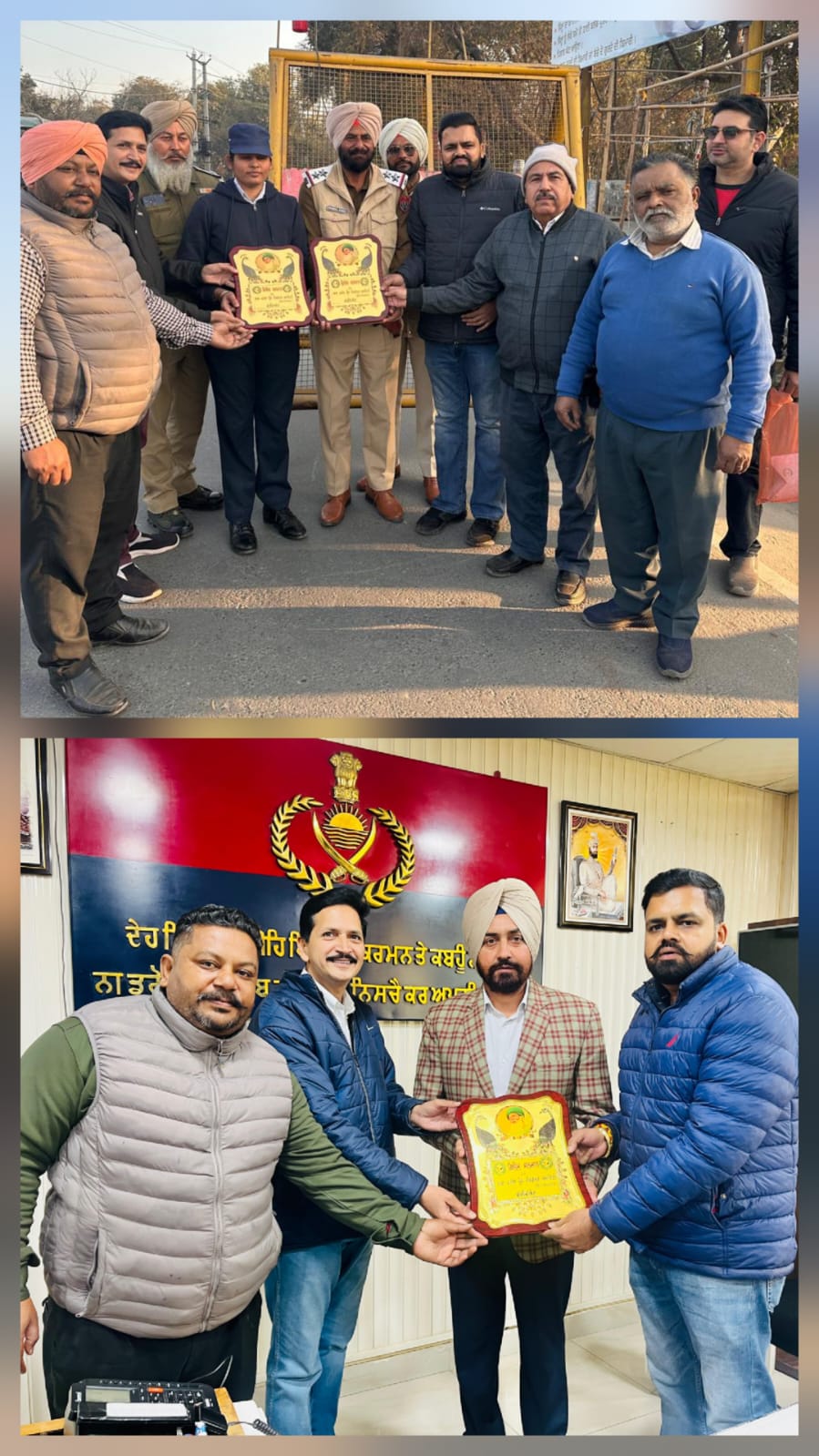26 ਜਨਵਰੀ ਨੂੰ ਹੁਸ਼ਿਆਰਪੁਰ ਵਿੱਚ ਹੋਣ ਵਾਲੇ ਗਣਤੰਤਰ ਦਿਵਸ ਸਮਾਰੋਹ ਵਿੱਚ ਮੁੱਖ ਮੰਤਰੀ ਭਗਵੰਤ ਸਿੰਘ ਮਾਨ ਵੱਲੋਂ ਸਨਮਾਨਿਤ ਕੀਤੇ ਜਾਣ ਵਾਲੇ ਫਰੀਦਕੋਟ ਐਸਪੀ ਹੈੱਡਕੁਆਰਟਰ ਮਨਿੰਦਰ ਬੀਰ ਸਿੰਘ ਅਤੇ ਟ੍ਰੈਫਿਕ ਵਿੰਗ ਵਿੱਚ ਕੰਮ ਕਰਨ ਵਾਲੀ ਲੇਡੀ ਕਾਂਸਟੇਬਲ ਅਨੁਬਾਲਾ ਨੂੰ ਬਾਬਾ ਫਰੀਦ ਵੈਲਫੇਅਰ ਸੋਸਾਇਟੀ ਵੱਲੋਂ ਸਨਮਾਨਿਤ ਕੀਤਾ ਗਿਆ, ਇਸ ਦੇ ਨਾਲ ਨਾਲ ਵਧੀਆਂ ਸੇਵਾਵਾਂ ਨਿਭਾਉਣ ਵਾਲੇ ਟ੍ਰੈਫਿਕ ਇੰਚਾਰਜ ਵਕੀਲ ਸਿੰਘ ਨੂੰ ਵੀ ਸਨਮਾਨਿਤ ਕੀਤਾ ਗਿਆ।