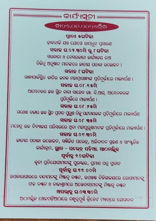 ମଧୁବାବୁ ଙ୍କୁ ସାଧାରଣ ତନ୍ତ୍ର ଦିବସ ରେ ସମ୍ମାନିତ କରିବାକୁ କୁଂଥୁକୁଂଥୁ ଉପଖଣ୍ଡ ପ୍ରଶାସନ l