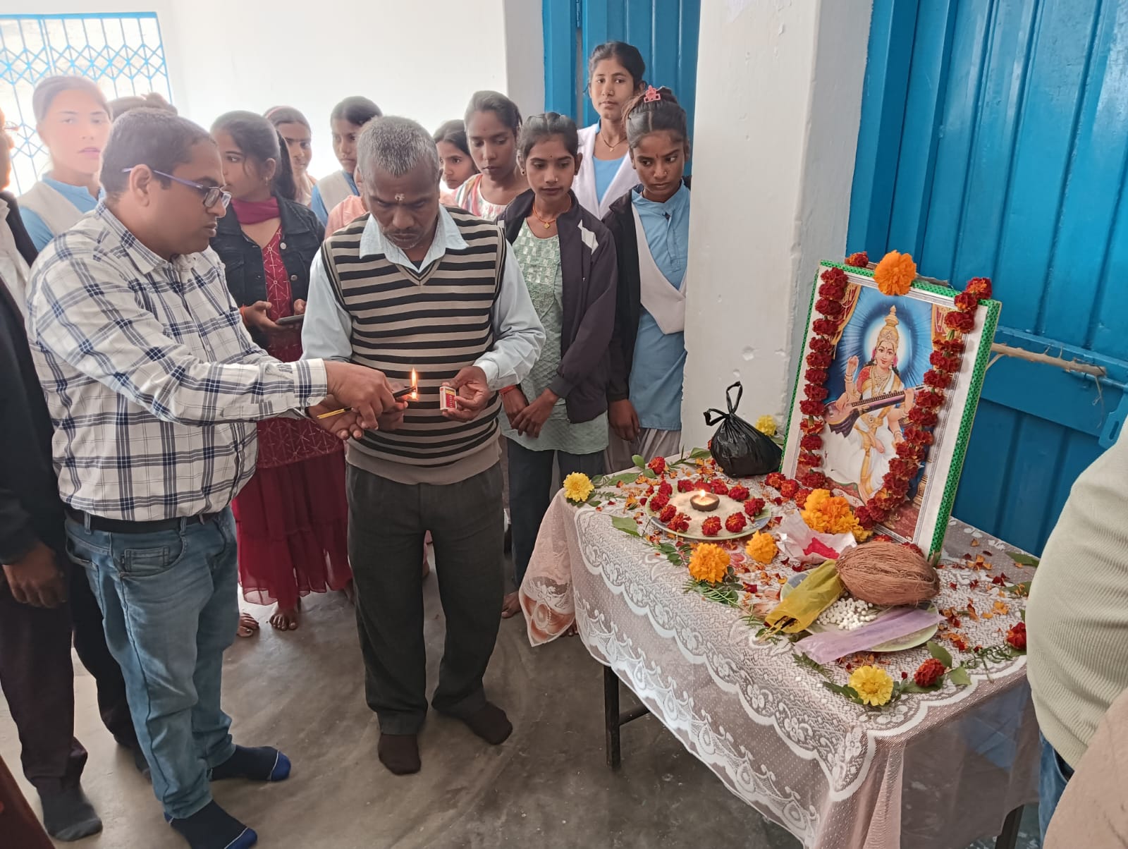 शासकीय उच्चतर माध्यमिक विद्यालय चितवरिया जिला सीधी मध्य प्रदेश में धूमधाम से मनाया गया मां वीणा वादिनी सरस्वती पूजा