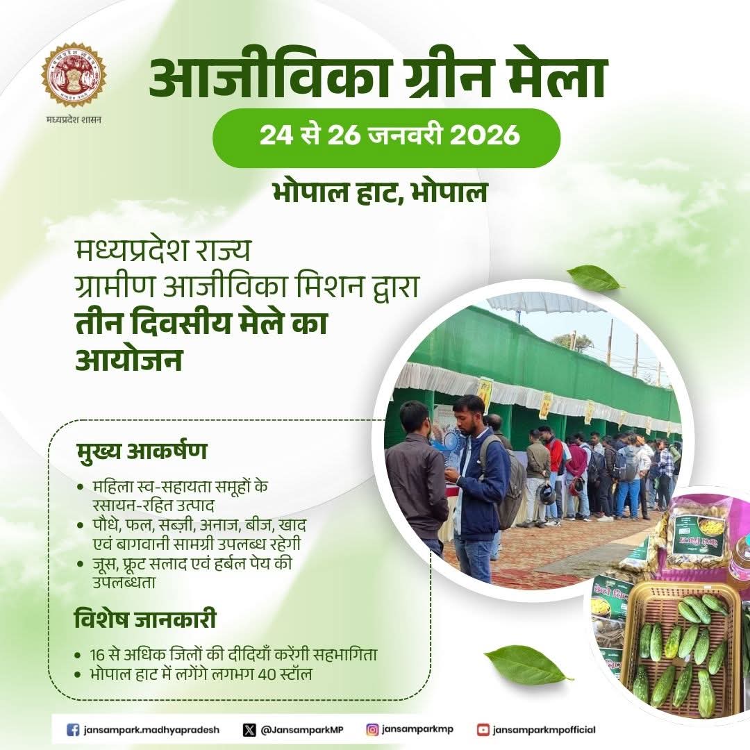 मध्यप्रदेश राज्य ग्रामीण आजीविका मिशन द्वारा तीन दिवसीय आजीविका ग्रीन मेले का आयोजन