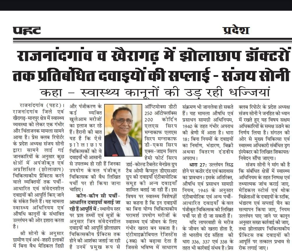 छत्तीसगढ़ में झोलाछाप डॉक्टरों तक प्रतिबंधित दवाइयों की सप्लाई कोई लापरवाही नहीं, बल्कि एक सुनियोजित और संगठित स्वास्थ्य अपराध है।