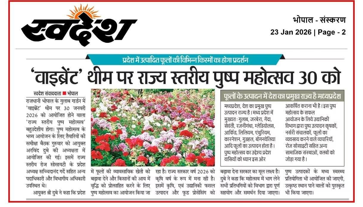 'वाइब्रेंट' थीम पर राज्य स्तरीय पुष्प महोत्सव 30 जनवरी को...
