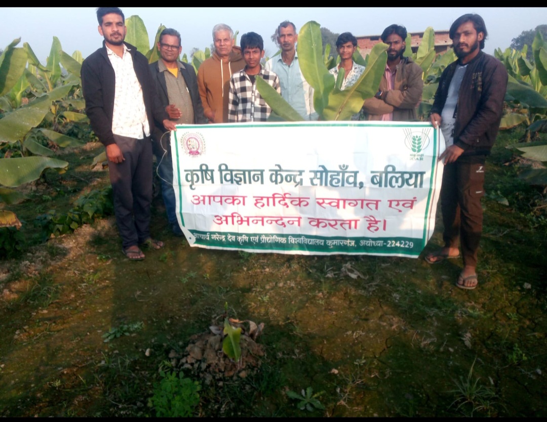 आचार्य नरेंद्र देव कृषि एवं प्रौद्योगिक विश्वविद्यालय कुमारगंज अयोध्या द्वारा संचालित कृषि विज्ञान केंद्र सोहाँव बलिया के वरिष्ठ वैज्ञानिक एवं अध्यक्ष डॉ संजीत कुमार द्वारा जनपद के प्रगतिशील किसान श्री धीरेंद्र कुमार शर्मा उर्फ धीरेन्द्र राय के लगभग 15 एकड़ प्रक्षेत्र का भ्रमण किया जिसके दौरान गेहूं, सरसों बरसीम, प्याज, लहसुन, पत्ता गोभी आलू, केला की खेती खेतों की मेढ़ पर लगाएं गये के पेड़, केंचुआ खाद उत्पादन इकाई, मछली पालन तालाब, सोलर पंप आटा चक्की निर्माणाधीन पैक हाउस आदि का अवलोकन किया l प्रगतिशील किसान श्री धीरेंद्र कुमार शर्मा ने कहा कि कृषि विज्ञान केंद्र बलिया के तकनीकी सहयोग एवं कृषि विभाग, उद्यान विभाग, मत्स्य विभाग आदि के माध्यम से उत्तर प्रदेश सरकार द्वारा वित्तीय सहयोग प्राप्त कर अपने प्रक्षेत्र पर एकीकृत कृषि प्रणाली को अपनाते हुए प्रतिवर्ष लगभग अच्छी आमदनी प्राप्त कर रहे हैं जिन्हें देखकर आसपास के किसान भी वैज्ञानिक खेती को अपनाने के लिए अग्रसर है l कृषि विज्ञान केंद्र बलिया के वरिष्ठ वैज्ञानिक एवं अध्यक्ष डॉ संजीत कुमार ने श्री धीरेंद्र कुमार शर्मा द्वारा अपनाई गई कृषि नवीनतम वैज्ञानिक तकनीकों को देखकर उनकी सराहना किया, डॉ संजीत कुमार ने कहा की वर्तमान समय में सरकार, कृषि वैज्ञानिक एवं कृषि व्यवसाय से जुड़े सभी विभाग किसानों की आय बढ़ाने के लिए प्रयासरत हैं साथ ही साथ डॉ संजीत कुमार ने किसानों से आग्रह किया कि किसान भाई अपने खेतों पर एकीकृत कृषि प्रणाली को अपनाते हुए कृषि के संसाधनों का उचित उपयोग करके वातावरण को संतुलित बनाए रखते हुए अपनी शुद्ध आय को बढ़ाने के साथ-साथ ग्रामीण क्षेत्रों में रोजगार के अवसर पैदा करने में महत्वपूर्ण भूमिका निभा सकते हैं जिससे ग्रामीण क्षेत्रों में निश्चित रूप से खुशहाली आएगी और ग्रामीण क्षेत्र में लोग आत्मनिर्भर बनेंगे तथा सरकार द्वारा चलाया जा रहा विकसित कृषि संकल्प अभियान निश्चित रूप से साकार होगा l उन्होंने कहा कि किसान भाई अपने खेतों से सीधे वीडियो कॉल माध्यम से भी कृषि एवं इससे जुड़े व्यवसायों के बारे में कृषि विज्ञान केन्द्र सोहाँव बलिया के वैज्ञानिकों से चर्चा कर सकते हैं l