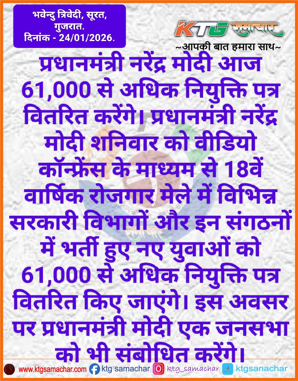 प्रधानमंत्री मोदी आज 61000 से अधिक नियुक्ति पत्र वितरण करेंगे.