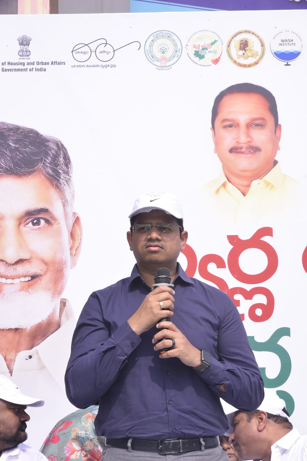 - *స్వచ్ఛాంధ్ర కార్పొరేషన్ డైరెక్టర్ భవాని రవికుమార్ మాట్లాడుతూ మన గౌరవ ముఖ్యమంత్రి, డిప్యూటీ సీఎం వారి సారథ్యంలో స్వచ్ఛ ఆంధ్ర కార్పొరేషన్ ద్వారా రాష్ట్రంలో పారిశుధ్యం మెరుగు పడేలా ప్రజల ఆరోగ్యమే ధ్యేయంగా పలు థీమ్ లతో నిర్వహించుకుంటున్నామని అన్నారు. పొడి చెత్త తడి చెత్త విడివిడిగా ప్రతి ఒక్కరూ నిర్వహించాలని కోరారు.*