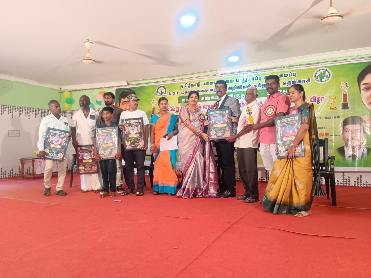 24/01/2026 தென்காசி மாவட்டம், கொடிக்குறிச்சி USP மகளிர் கலை மற்றும் அறிவியல் கல்லூரியில், தமிழ்நாடு பனை மரங்கள் பாதுகாப்பு கூட்டமைப்பின் தமிழர் கலை பண்பாட்டுத் திருவிழா மற்றும் தமிழ் சங்கமம் விருதுகள் 2026 விழாவானது, நிறுவனத் தலைவர் M.A தாமோதரன் தலைமையில், முத்தமிழ் தாரகை சுகந்தினா. Phd சிறப்பு விருந்தினராக கலந்து கொண்டு. பசுமை தோழன் கடையநல்லூர் திரு.வி. அர்ச்சுனனின் பணியை பாராட்டி "பசுமை தோழன்" விருதை வழங்கினார்.இந்நிகழ்வில் பாமக சமூக நீதிப் பேரவை தலைவர் வழக்கறிஞர் இலத்தூர் கோ கிருஷ்ணன் இவ்விழாவில் பசுமை தோழனுடன் கலந்து கொண்டார்.