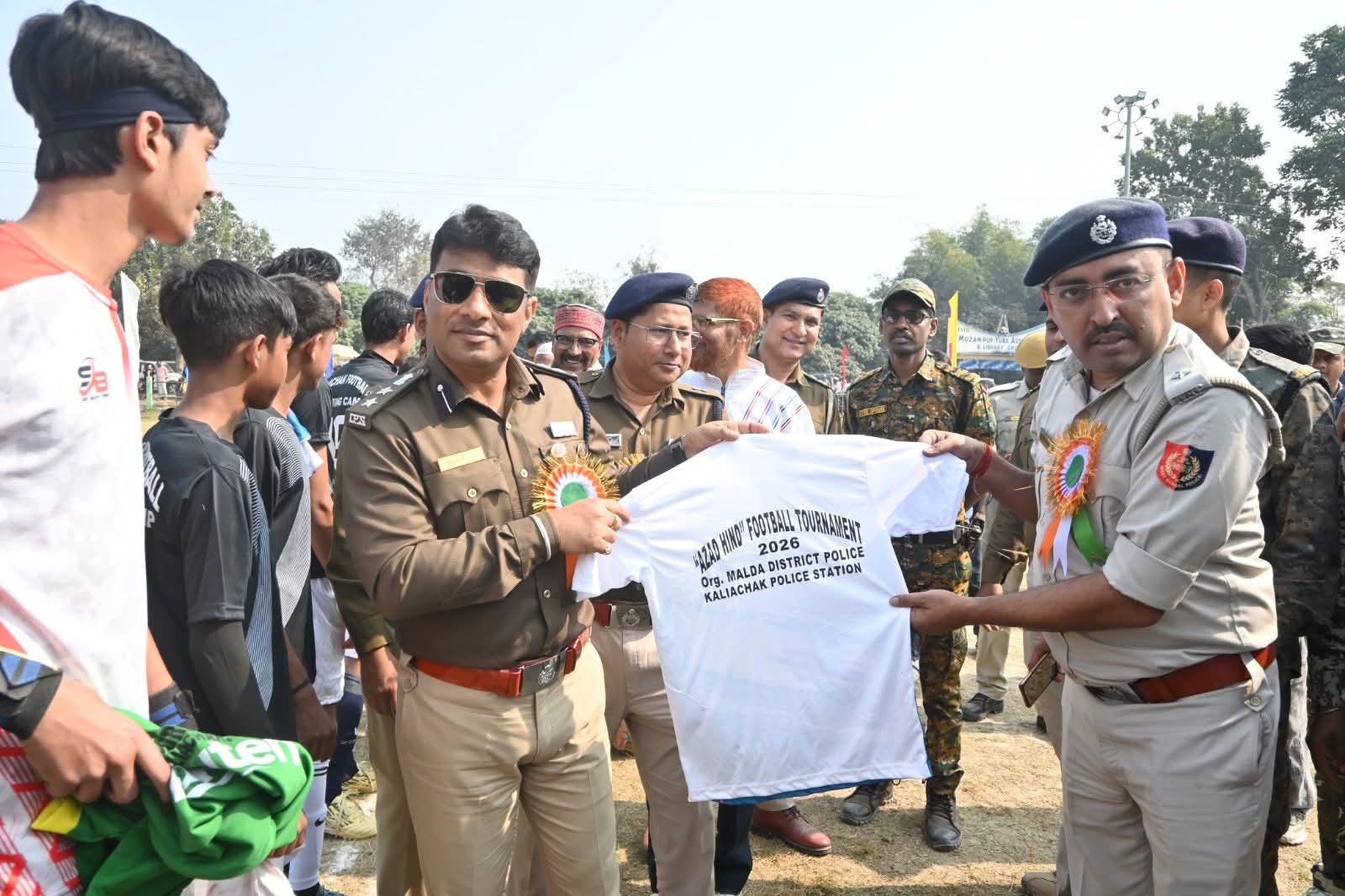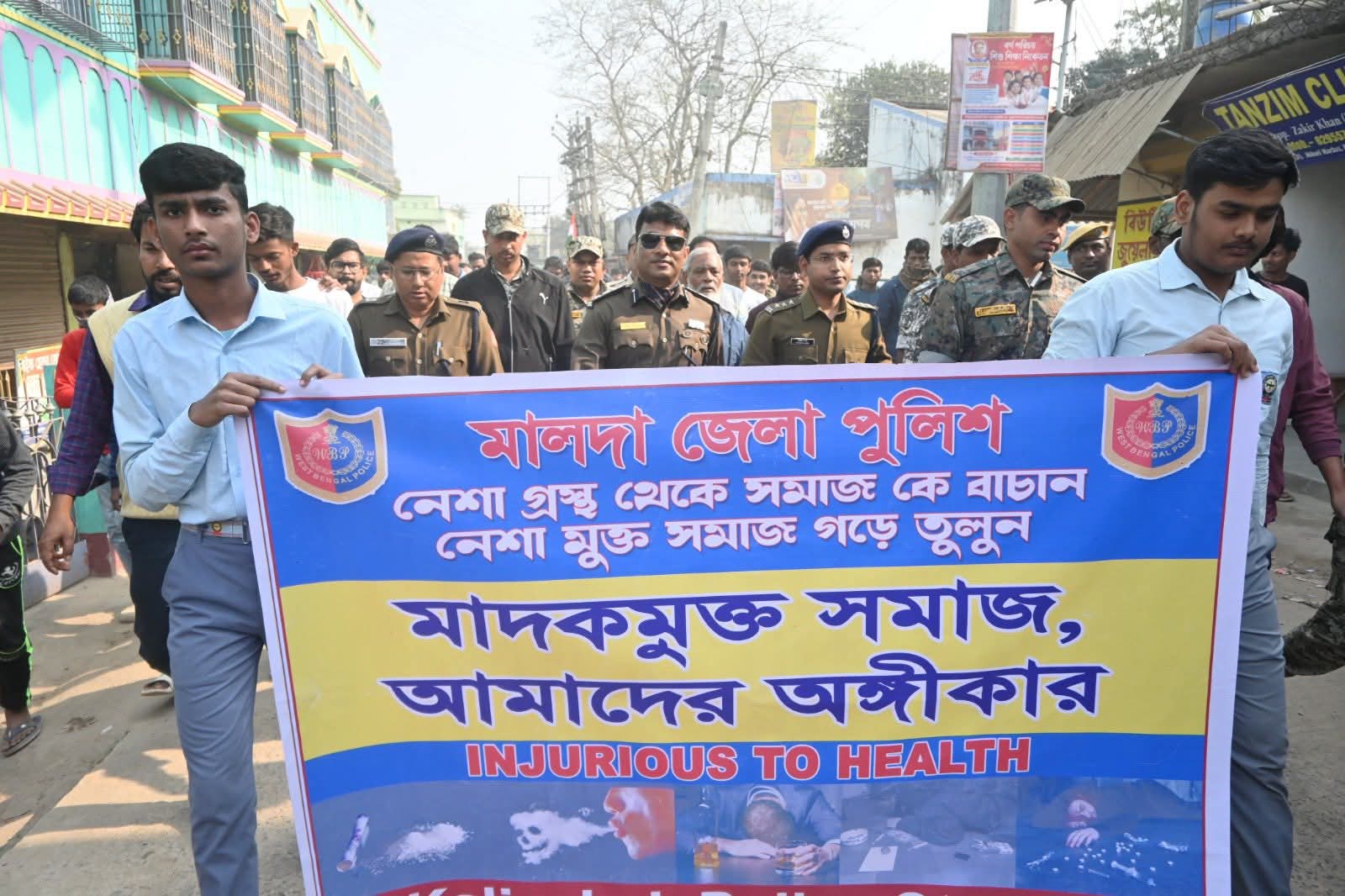 On the occasion of Netaji Subhas Chandra Bose's 127th birth anniversary, an awareness rally was organized in the Kaliachak police station area with the aim of creating a drug-free society. The rally was led by the Superintendent of Police of Malda district, the esteemed Shri Abhijit Banerjee, IPS. He delivered a clear message: drug trafficking and drug abuse will not be tolerated under any circumstances, and the police's zero-tolerance policy on this matter will continue.During the event, sweets were distributed among the children and general public present, symbolizing social harmony and a positive message.Additionally, the "Azad Hind" knockout football tournament was inaugurated with the objective of actively engaging the youth in more constructive activities. The tournament will be held today and tomorrow.The Malda District Police is proud to be a part of such an initiative on the birth anniversary of this great national leader, and the district police's continuous and unwavering efforts to keep society drug-free will continue in the future.