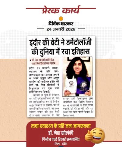 प्रेरक कार्यइंदौर की बेटी ने डर्मेटोलॉजी की दुनिया में रचा इतिहासDr Mohan Yadav CM Madhya Pradesh Department of Sports & Youth Welfare, Madhya Pradesh Dainik Bhaskar #CMMadhyaPradesh #MadhyaPradesh #JansamparkMP