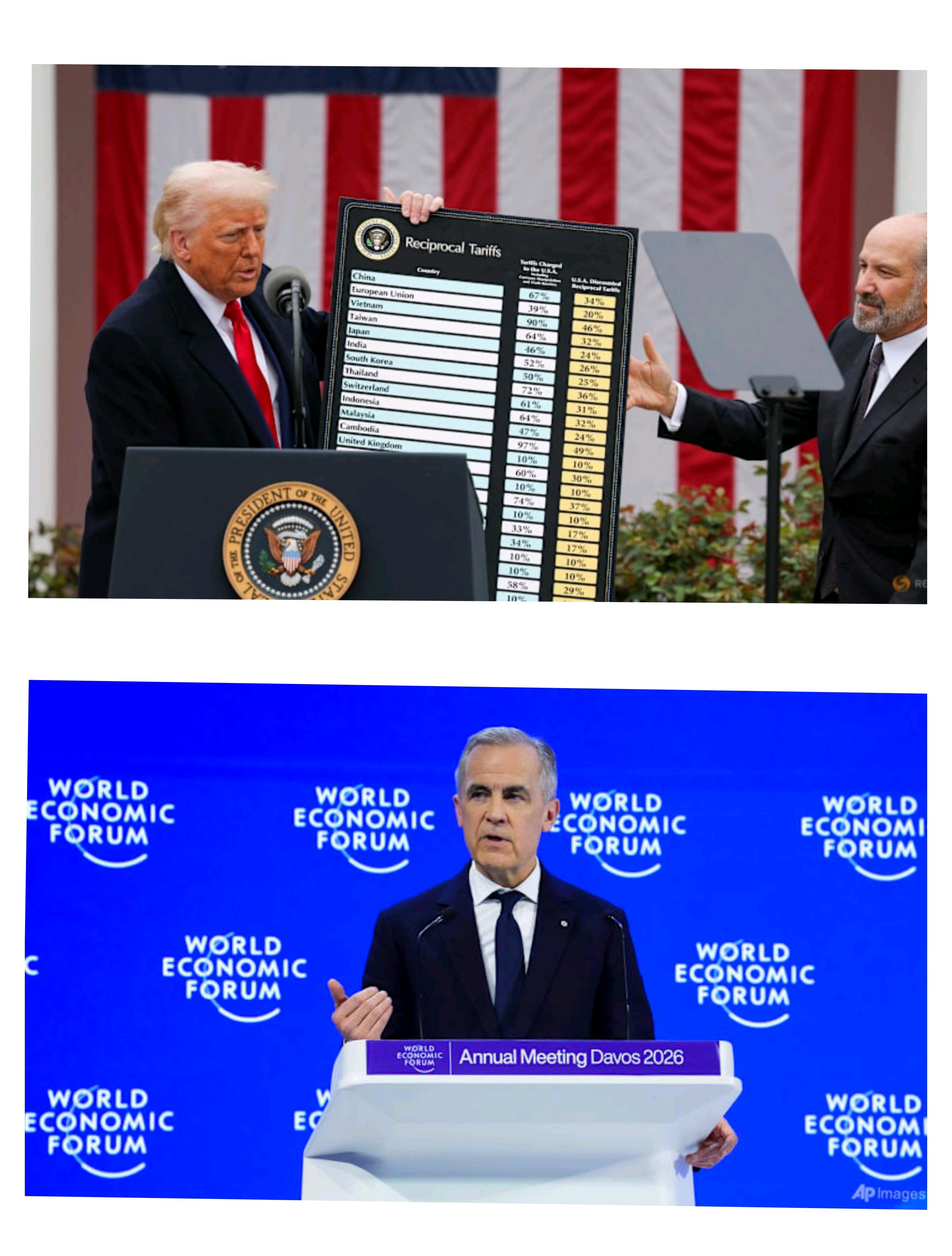 Carney subsequently, at the World Economic Forum, called on nations to accept that a rules-based global order was over and pointed to Canada as an example of how "middle powers" might act together to avoid being victimised by American hegemony.