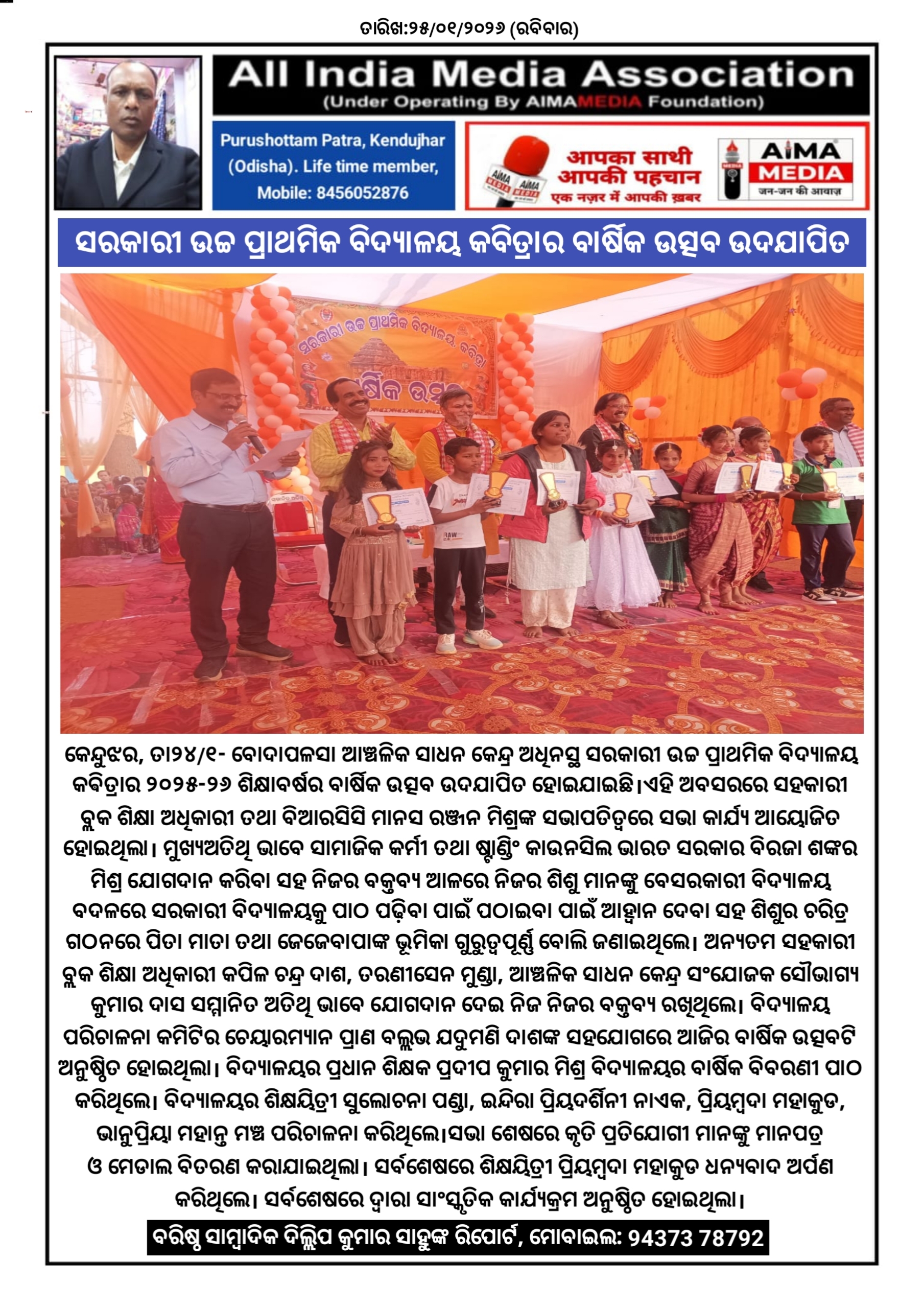 ସରକାରୀ ଉଚ୍ଚ ପ୍ରାଥମିକ ବିଦ୍ୟାଳୟ କବିତ୍ରାର ବାର୍ଷିକ ଉତ୍ସବ ଉଦଯାପିତ।