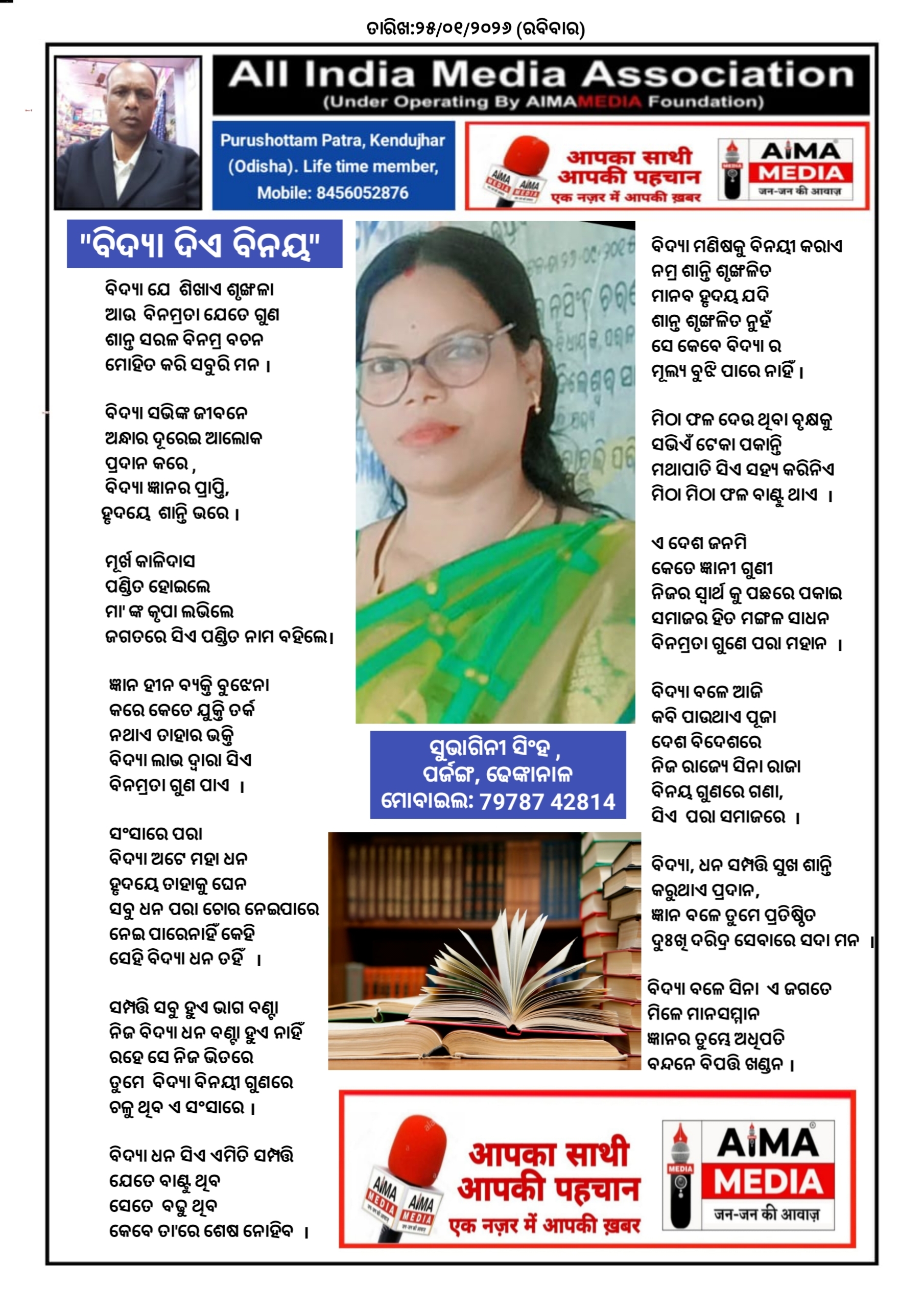 ବିଦ୍ୟା ଦିଏ ବିନୟ - ସୁଭାଗିନୀ ସିଂହ ଙ୍କ ଦ୍ଵାରା ରଚିତ କବିତା।