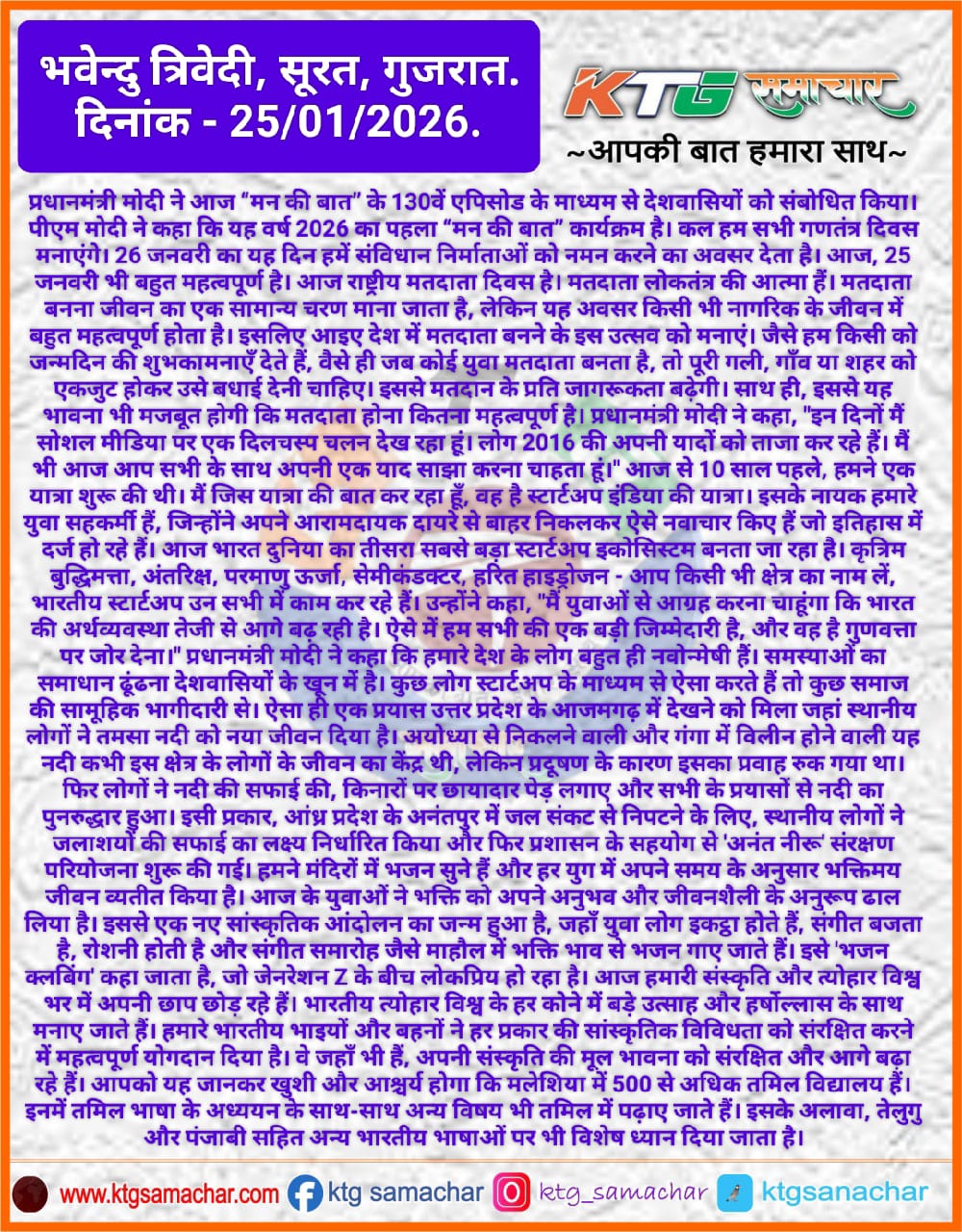 प्रधानमंत्री मोदी ने आज मन की बात के 130वें एपिसोड को संबोधित किया।