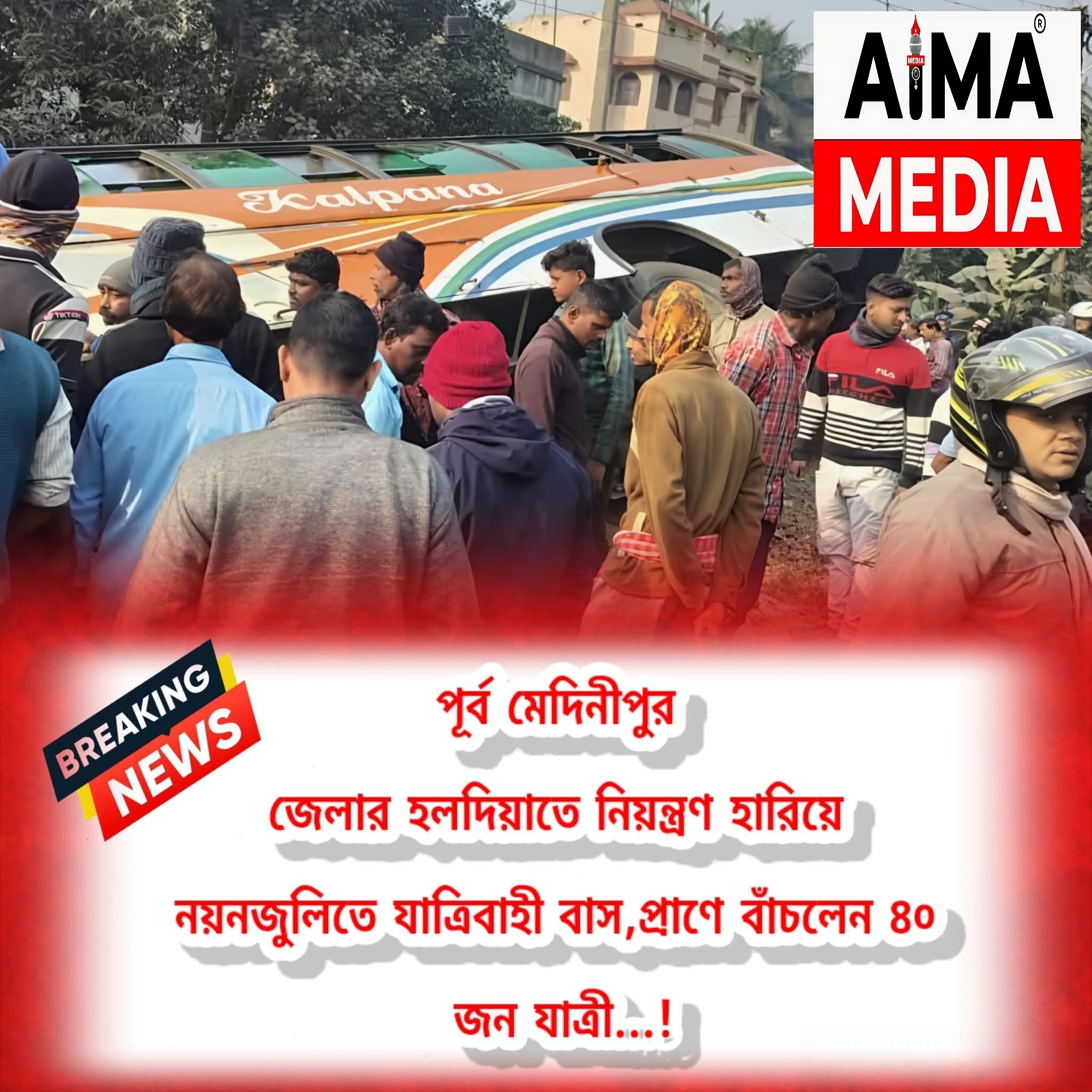 নিয়ন্ত্রণ হারিয়ে নয়নজুলিতে যাত্রিবাহী বাস, প্রাণে বাঁচলেন ৪০ জন যাত্রী!