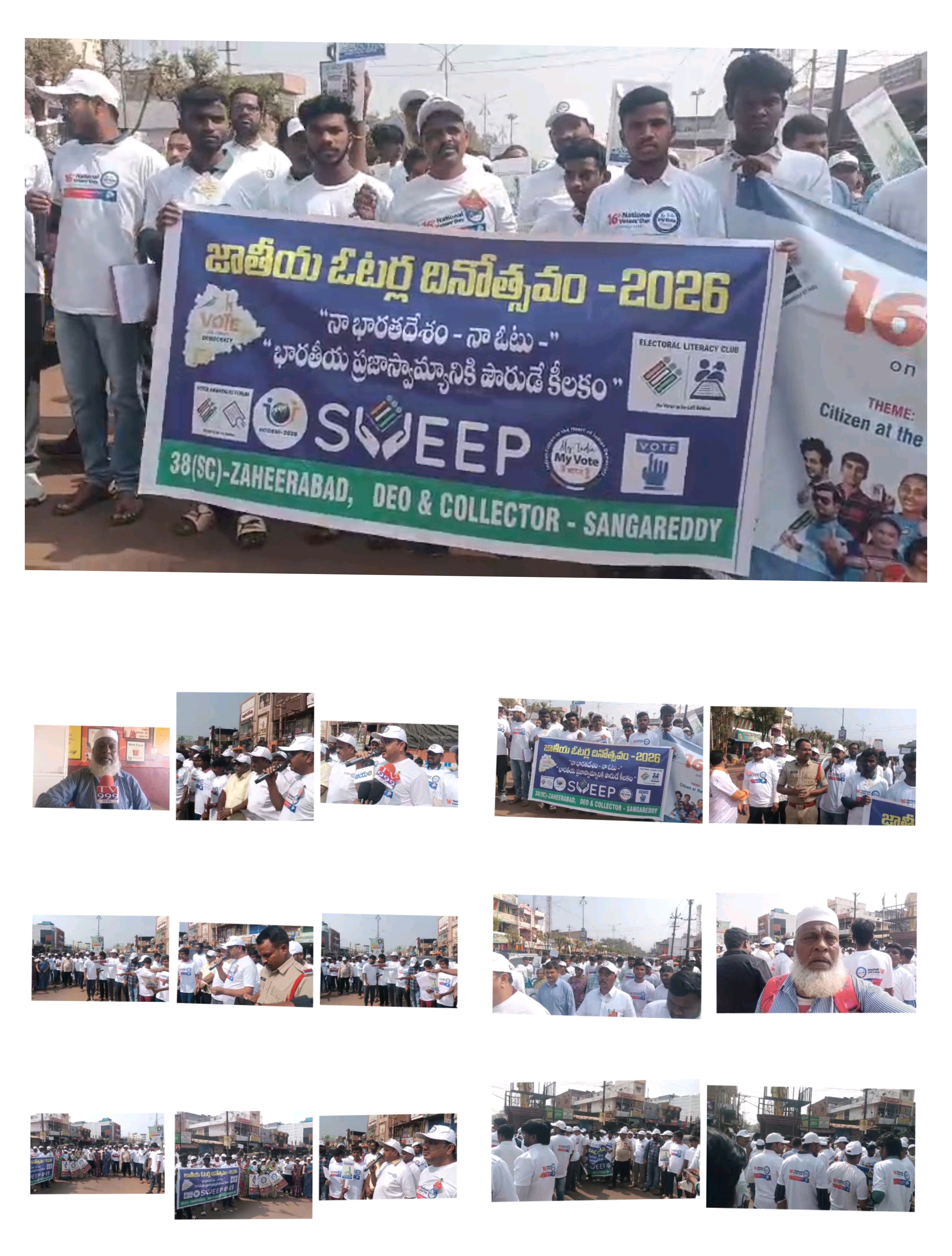 సంగరెడ్డి జిల్లా జహీరాబాద్ నియోజకవర్గం ర్యాలీ నిర్వహించడం. ఓటర్ల ప్రతిజ్ఞ. ఎమ్మార్వో, ఆర్డీవో, మా జిల్లా స్థాప్ రిపోర్టార్ మహమ్మద్ చాంద్ పాషా అడిగినందుకు. పక్కకు నిచ్చేశారు.