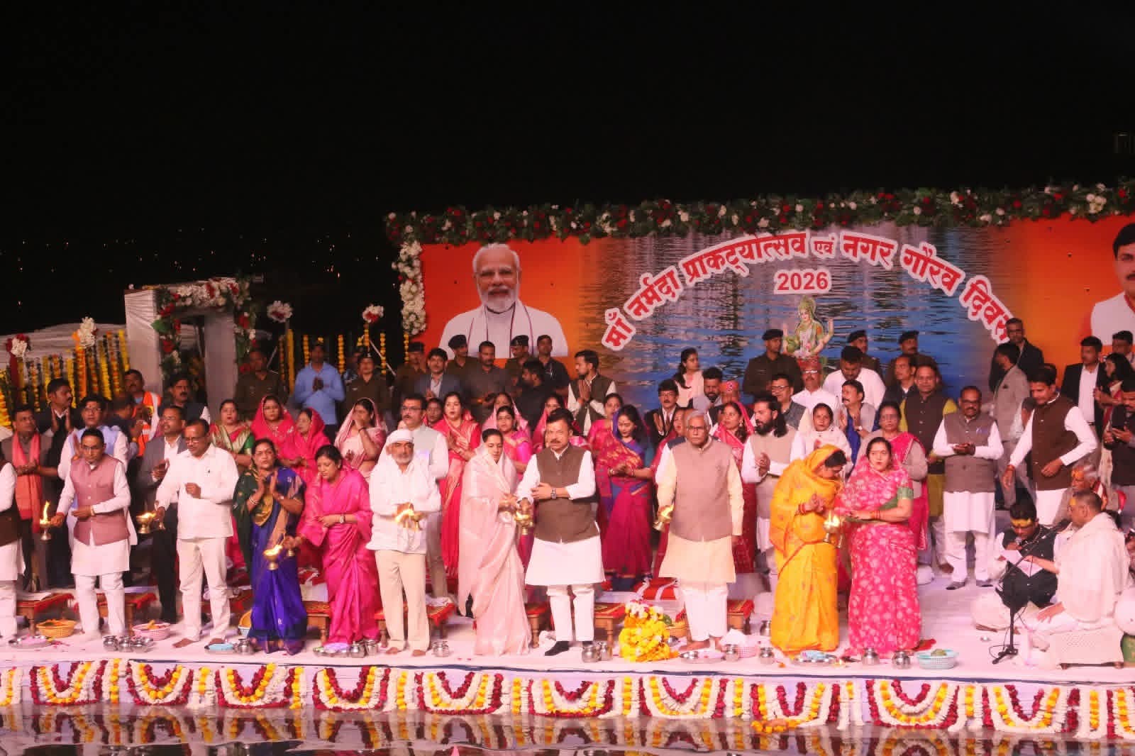 जल मंच पर पं सोमेश परसाई, पं गोपाल प्रसाद खड्डर व अन्य आचार्यों के द्वारा वैदिक मंत्रोच्चार के साथ मां नर्मदा की विधिवत पूजन अर्चना किया तथा मां नर्मदा का जल अभिषेक कराया गया। मंत्री श्री सिंह ने मां नर्मदा की महाआरती की।