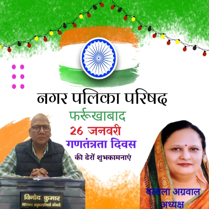 नगर पालिका परिषद, फर्रुखाबाद। नगर पालिका परिषद, फर्रुखाबाद की ओर से समस्त नगरवासियों को गणतंत्र दिवस की हार्दिक शुभकामनाएं।