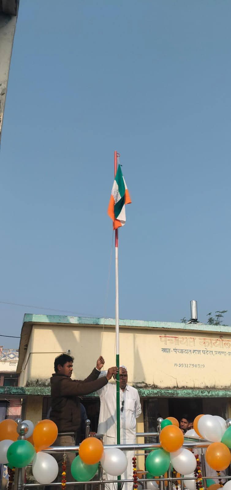 आज दिनांक 26 जनवरी 2026 को 77 वें गणतंत्र दिवस के शुभ अवसर पर ग्राम पंचायत राज पटेढा अंचल महराजगंज सिवान के वर्तमान मुखिया शेषनाथ सिंह एवम विकाश मित्र द्वारा पंचायत भवन पर उनके द्वारा उल्टा ध्वज फहराया गया ।