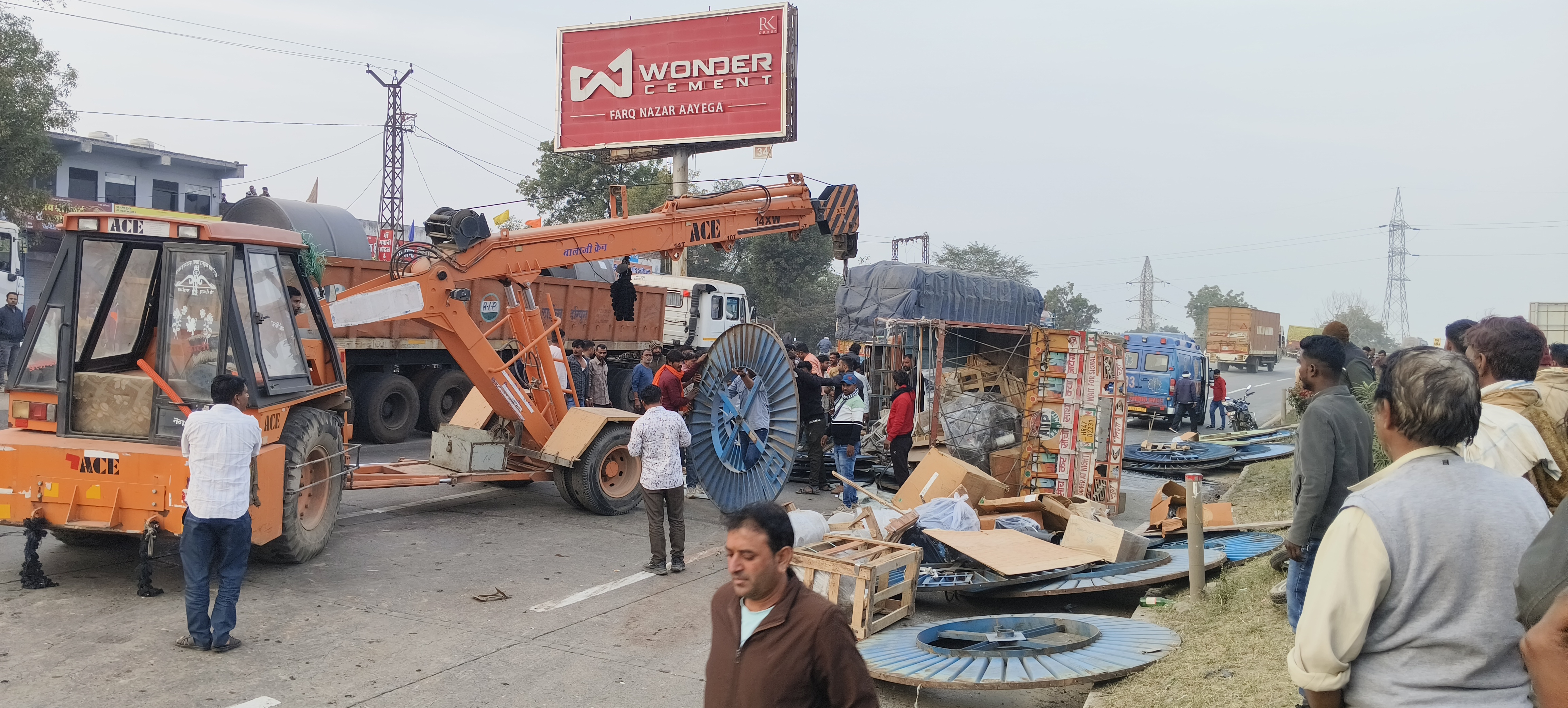 डिवाइडर पर चढ़ा ट्रक, फिर पलटकर बना मौत का फरिश्ता