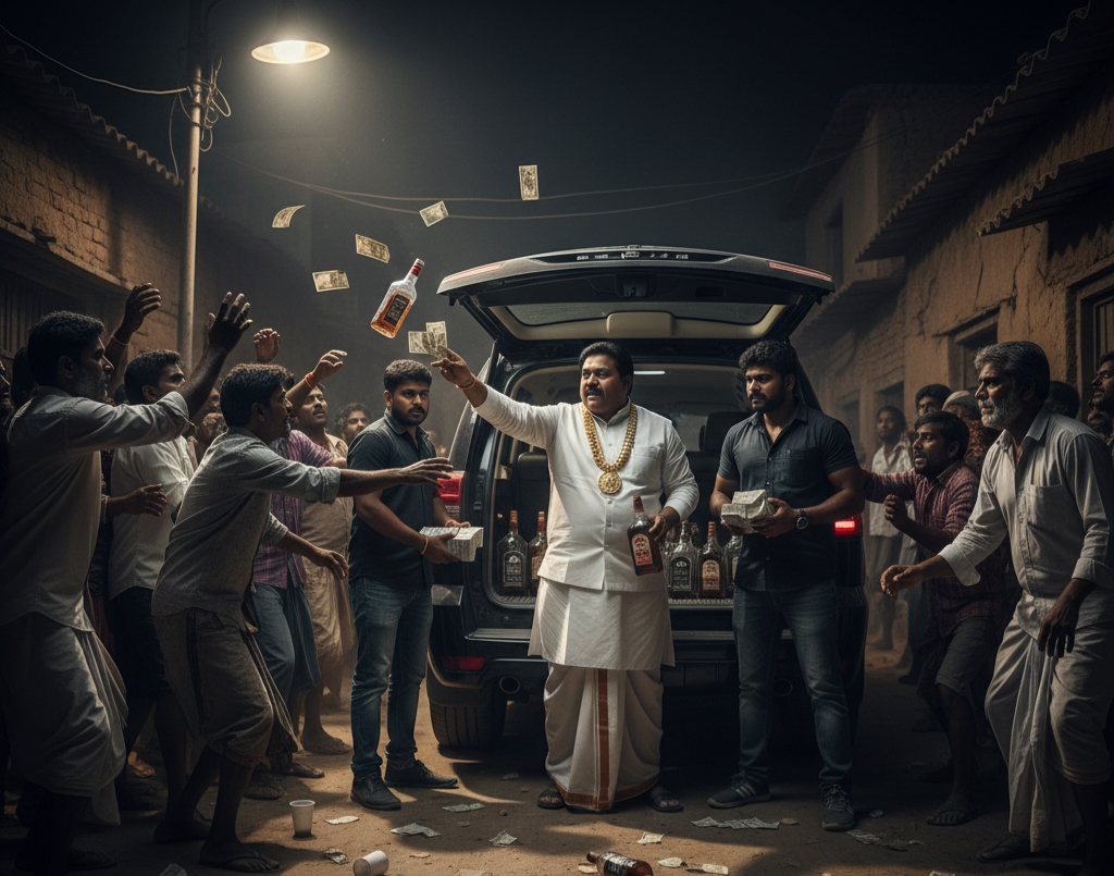 ఎన్నికల సమయంలో డబ్బు, మద్యంతో ఓటర్లను ప్రలోభపెట్టడం ఒక వ్యవస్థీకృత నేరంగా మారింది. "ఒక్క రాత్రి ఆనందం" కోసం ప్రజలు తమ ఐదేళ్ల భవిష్యత్తును తాకట్టు పెడుతున్నారు. ప్రజలు మద్యం మత్తులో ఉన్నప్పుడు సరైన నిర్ణయం తీసుకోలేరనేది రాజకీయ నాయకుల స్వార్థపూరిత ఆలోచన