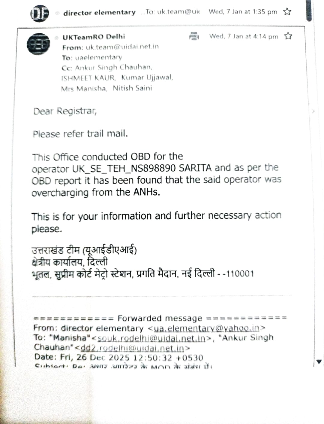 प्राप्त तथ्यों के अनुसार जांच में यह सामने आया है कि सरिता थलवाल द्वारा सरकारी आधार केंद्र को निजी दुकान में अवैध रूप से संचालित किया जा रहा था, जहां आम जनमानस से प्रति आधार कार्ड 300 से 400 रुपये तक की अवैध वसूली की जा रही थी। संबंधित एजेंसी द्वारा इस अवैध गतिविधि पर रोक लगाए जाने और आधार केंद्र बंद करवाए जाने के बाद, एजेंसी पर दबाव बनाने एवं ब्लैकमेल करने की सुनियोजित योजना विपक्षी तत्वों द्वारा तैयार की गई।