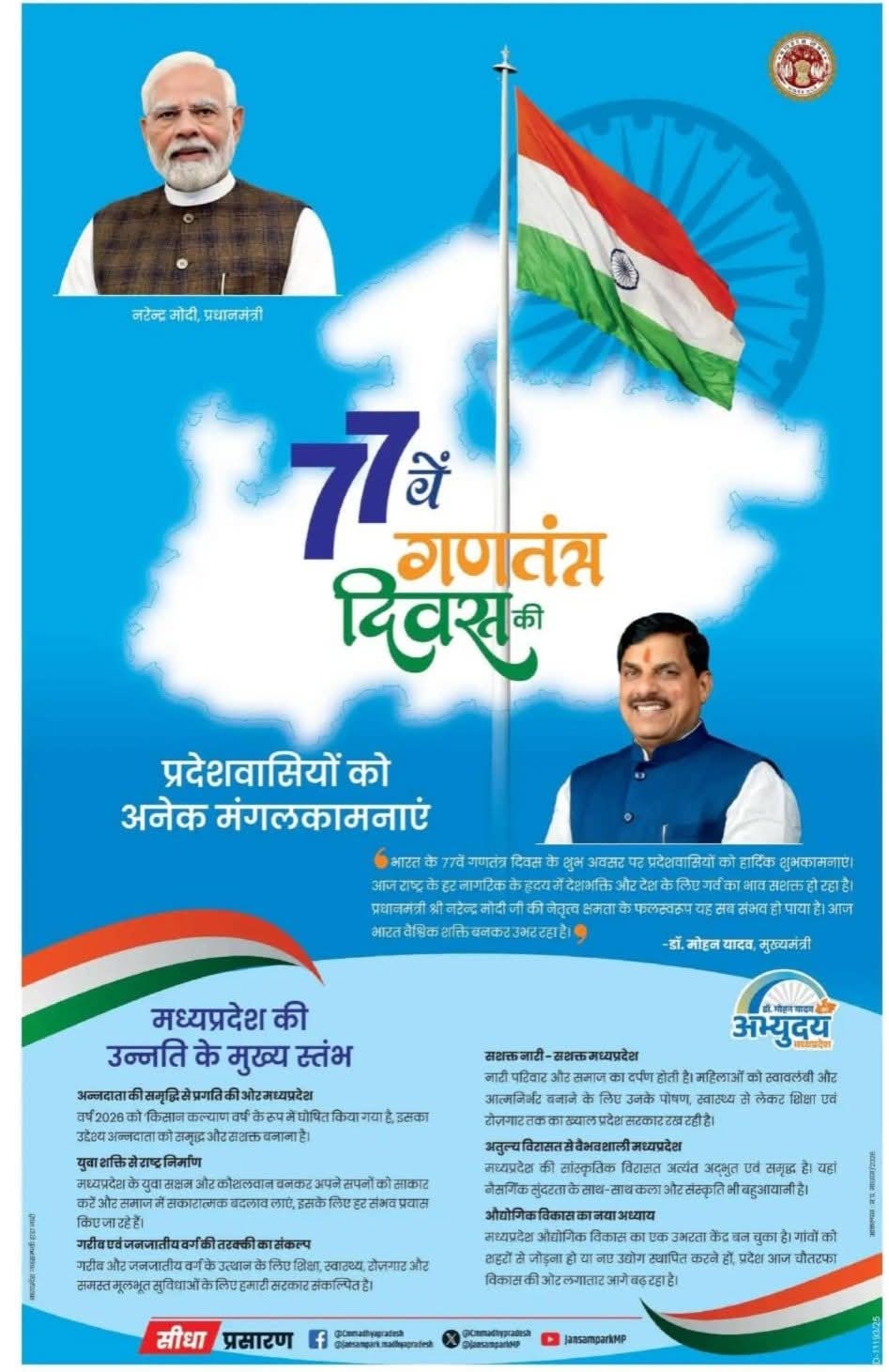 77वें गणतंत्र दिवस की प्रदेशवासियों को अनेक मंगलकामनाएं