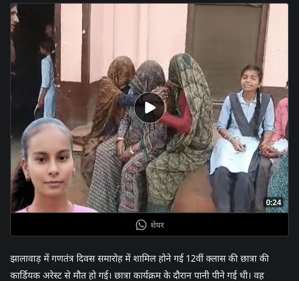 12वीं की छात्रा की हार्ट-अटैक से मौत: गणतंत्र दिवस समारोह में शामिल होने स्कूल गई थी, पानी पीते समय अचानक गिर पड़ी