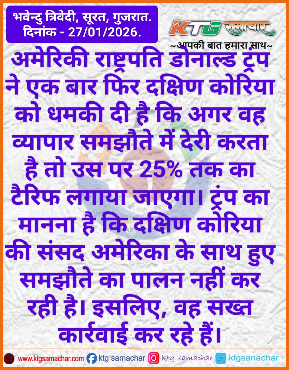 अमेरिकी राष्ट्रपति ट्रंप ने एक बार फिर दक्षिण कोरिया को टैरिफ लगाने की धमकी दी है।