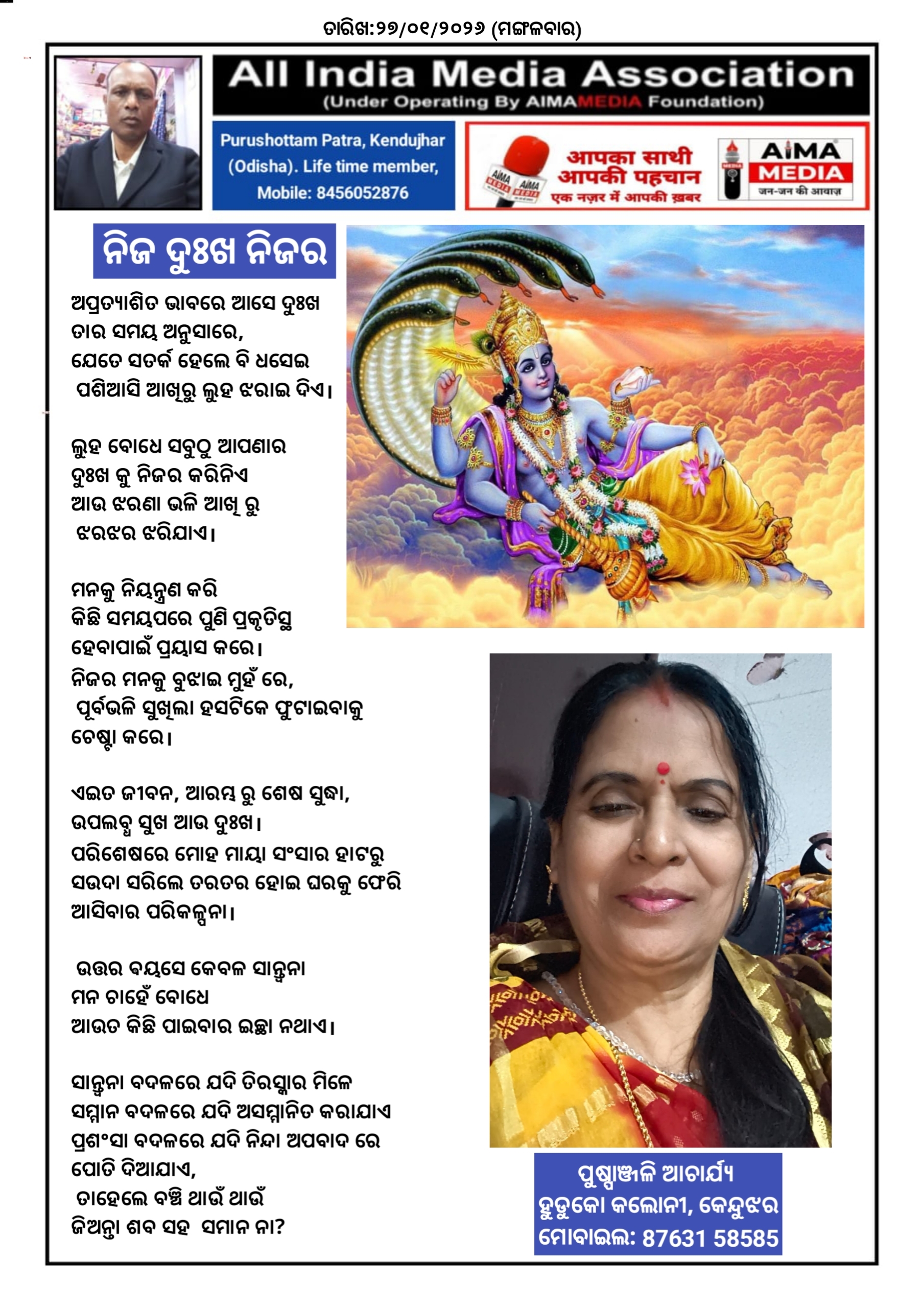 ନିଜ ଦୁଃଖ ନିଜର - ପୁଷ୍ପାଞ୍ଜଳି ଆଚାର୍ଯ୍ୟ ଙ୍କ ଦ୍ଵାରା ରଚିତ କବିତା।