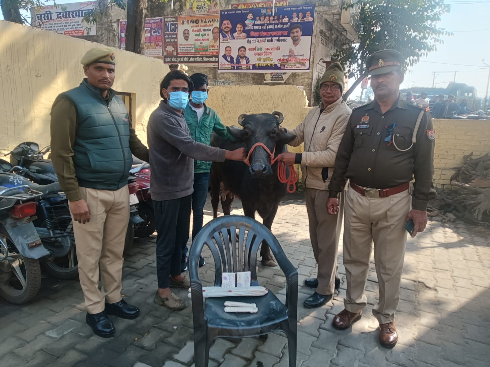 जनपद में अपराध नियंत्रण एवं पशु चोरी की घटनाओं पर प्रभावी अंकुश लगाने के लिए चलाए जा रहे विशेष अभियान के तहत थाना सिम्भावली पुलिस को बड़ी सफलता हाथ लगी है। पुलिस ने पशु चोरी की एक घटना का सफल अनावरण करते हुए दो अभियुक्तों को गिरफ्तार कर उनके कब्जे से चोरी की गई एक जिंदा भैंस, दो अवैध चाकू व एक कटर बरामद किए हैं।