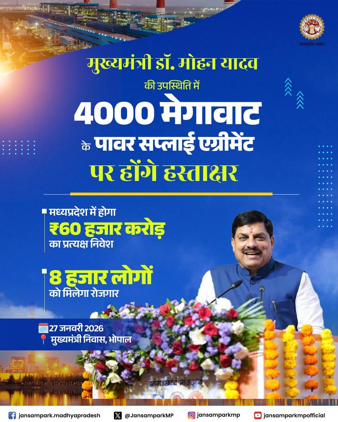 4000 मेगावाट के पावर सप्लाई एग्रीमेंट पर होंगे हस्ताक्षर