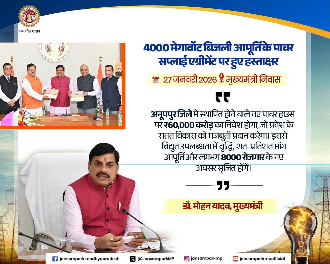 Dr Mohan Yadav CM Madhya Pradesh Department of Energy Madhya Pradesh #EnergyForGrowth #CMMadhyaPradesh #JansamparkMP