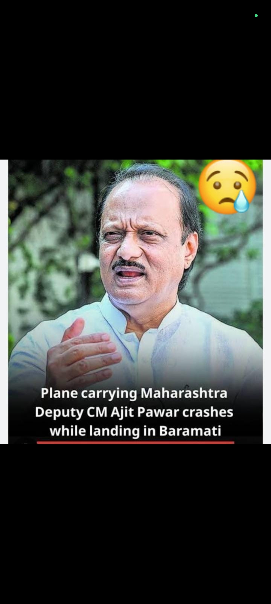 Today 28/01/2026 @ around 08.50am near Baramathi maharastra, DCM sri Ajit pawar travelling on private jet crashed to emergency landing, he is no more as per DGCA official news to us.