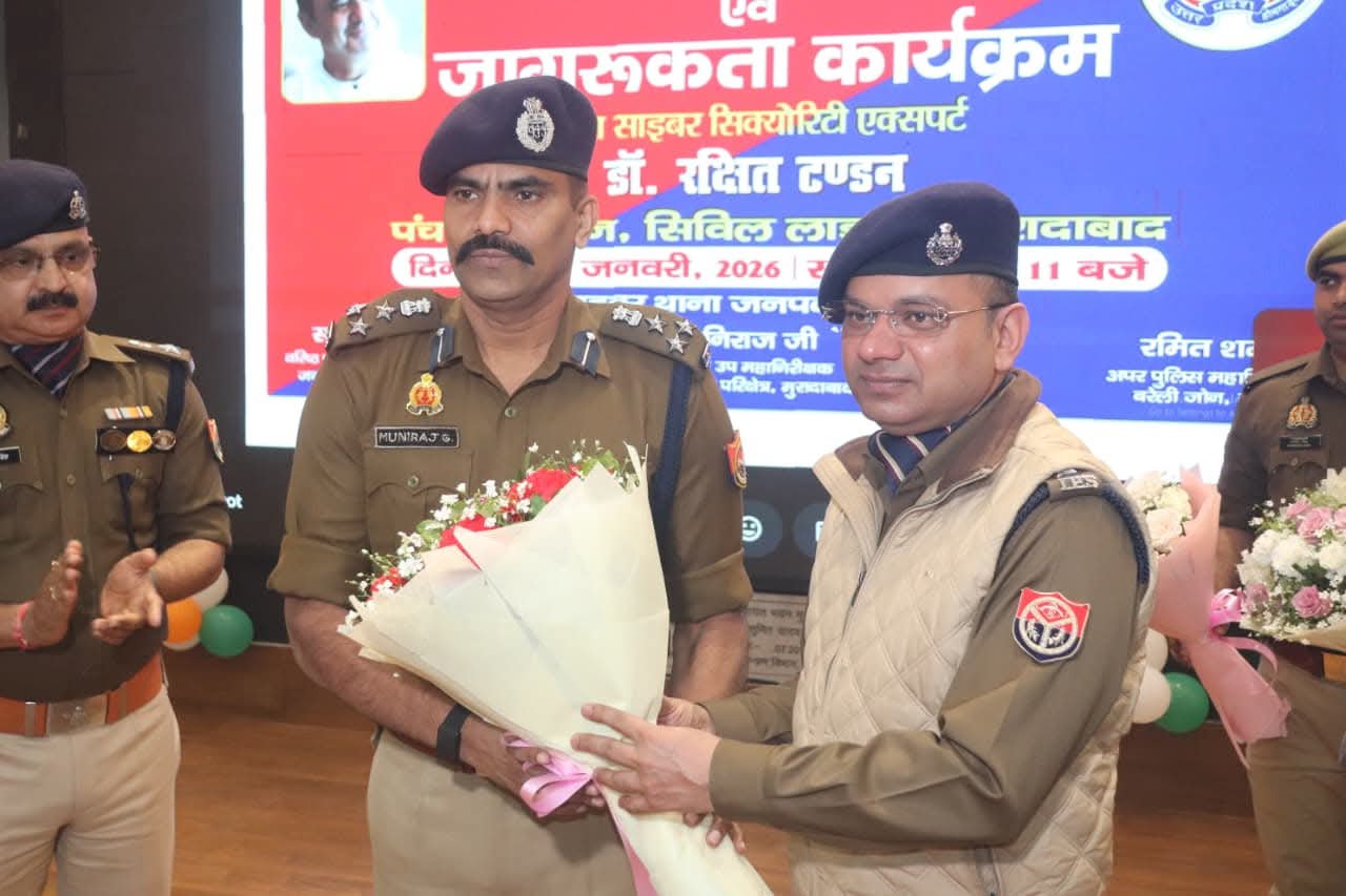 मुरादाबाद न्यूज दिनांक 27.01.2026 को साइबर सिक्योरिटी एक्सपर्ट डॉ. रक्षित टंडन द्वारा साइबर कार्यशाला एवं जागरूकता कार्यक्रम का आयोजन किया गया। कार्यक्रम का शुभारंभ श्रीमान पुलिस उपमहानिरीक्षक, मुरादाबाद परिक्षेत्र, मुरादाबाद एवं वरिष्ठ पुलिस अधीक्षक, मुरादाबाद द्वारा दीप प्रज्ज्वलित कर किया गया।इस अवसर पर पुलिस अधीक्षक नगर, पुलिस अधीक्षक ग्रामीण सहित अन्य पुलिस अधिकारीगण की उपस्थिति में पंचायत भवन में साइबर अपराध जागरूकता कार्यक्रम संपन्न हुआ।कार्यक्रम के दौरान साइबर अपराधों से संबंधित विभिन्न प्रकार की धोखाधड़ी, उनसे बचाव के उपायों के बारे में विस्तारपूर्वक जानकारी प्रदान कर उपस्थित श्रोतागण को जागरूक किया गया। साथ ही सभी उपस्थित जनों से अपील की गई कि वे साइबर अपराध से संबंधित जानकारी अपने परिजनों एवं समाज के अन्य सदस्यों तक भी पहुँचाएँ, ताकि आमजन साइबर अपराधों से सुरक्षित रह सकें। आइमा मीडिया संवाददाता प्रेम मसीह