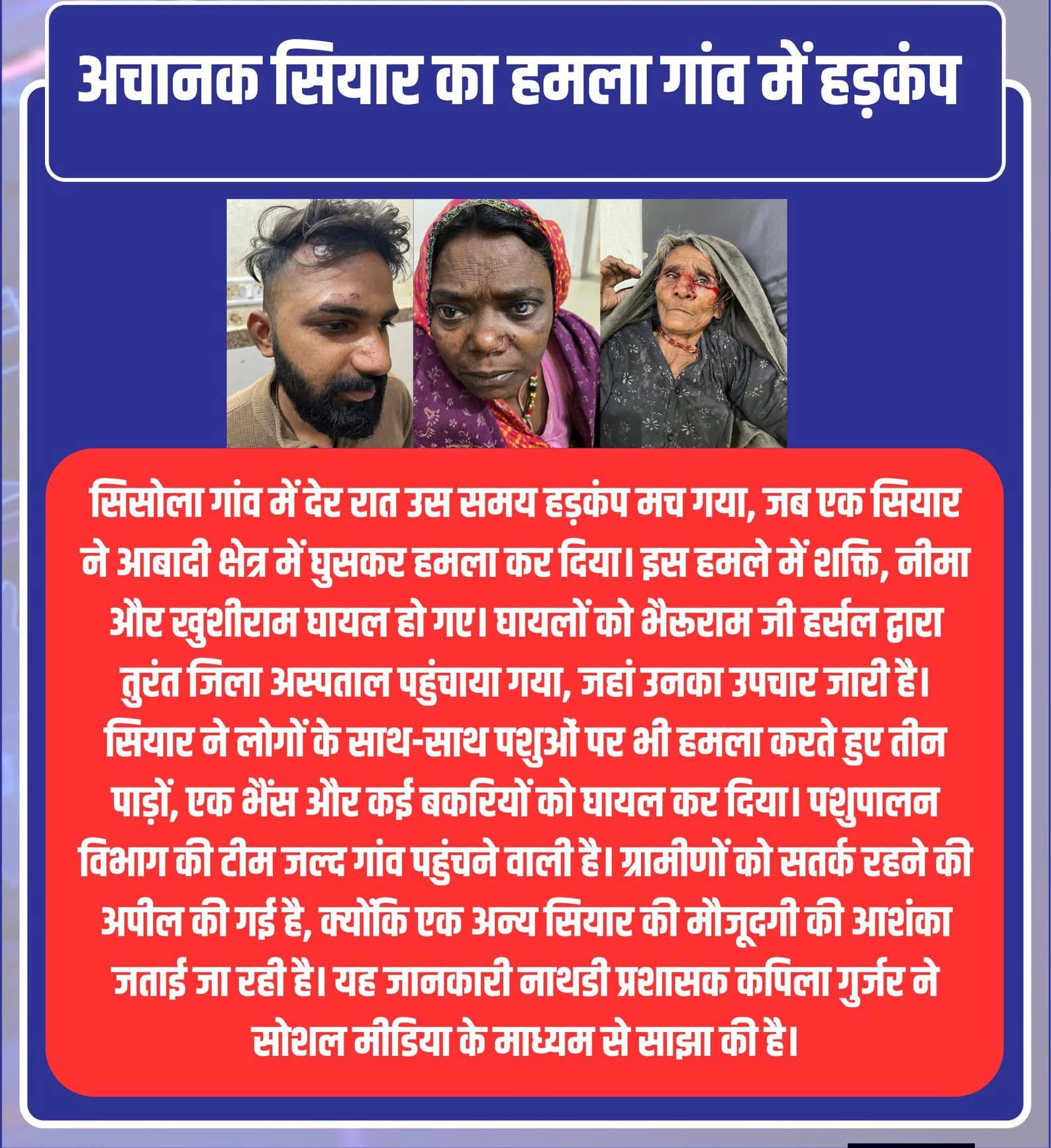 टोंक :- सिसोला गांव में सियार का आतंक, देर रात हमले से मचा हड़कंप, अफरातफरी का माहौल ।